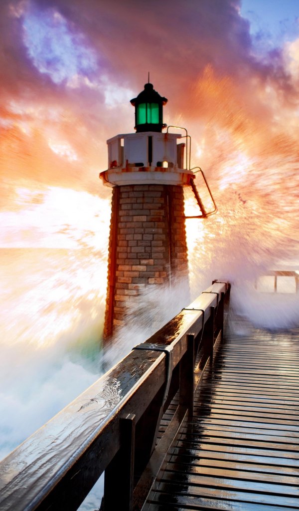 Обои: маяк, океан, волны - 600x1024