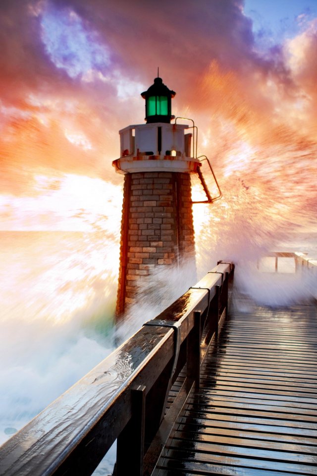 Обои: маяк, океан, волны - 640x960