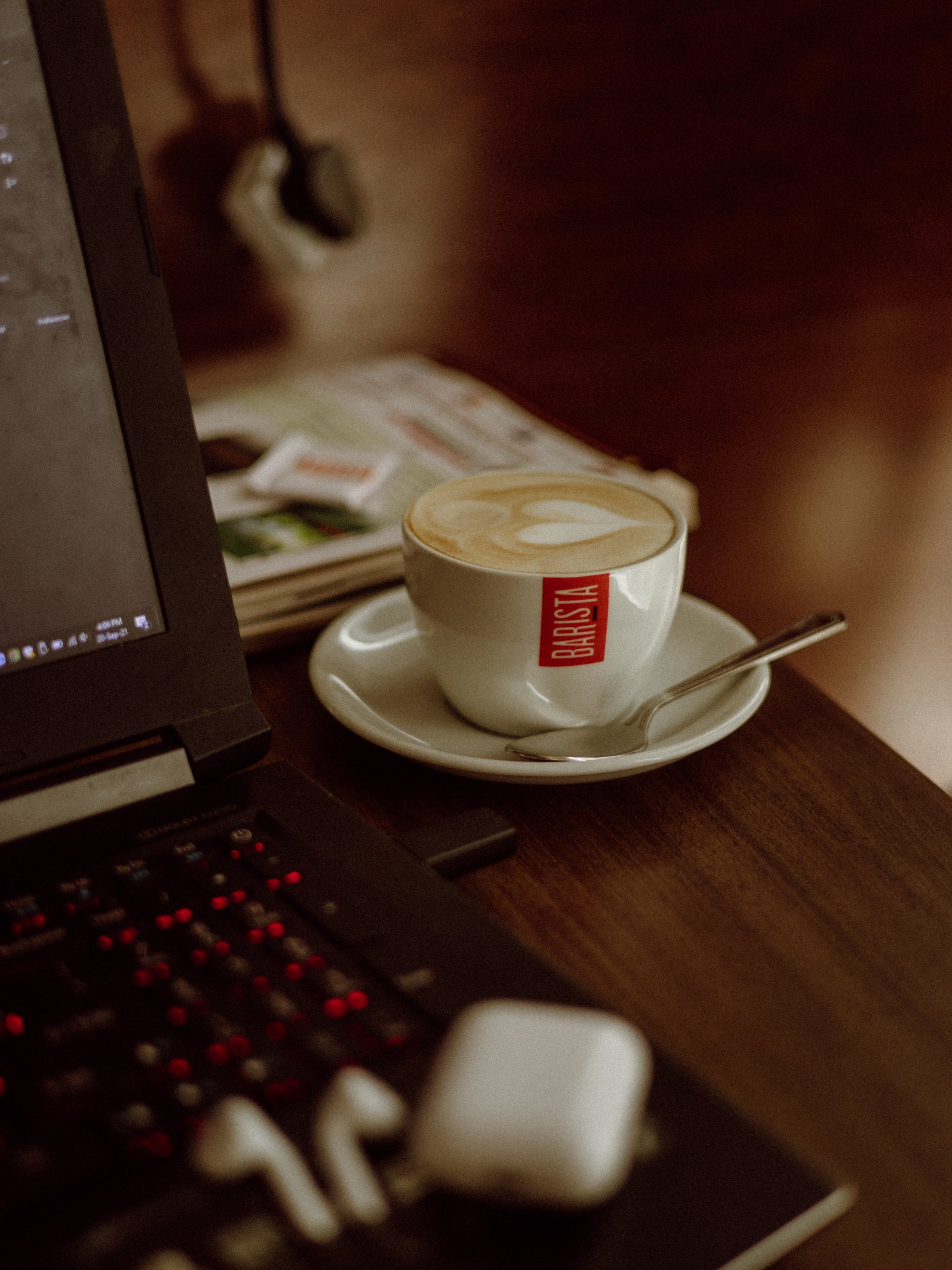 ноутбук, кофе, рабочее место