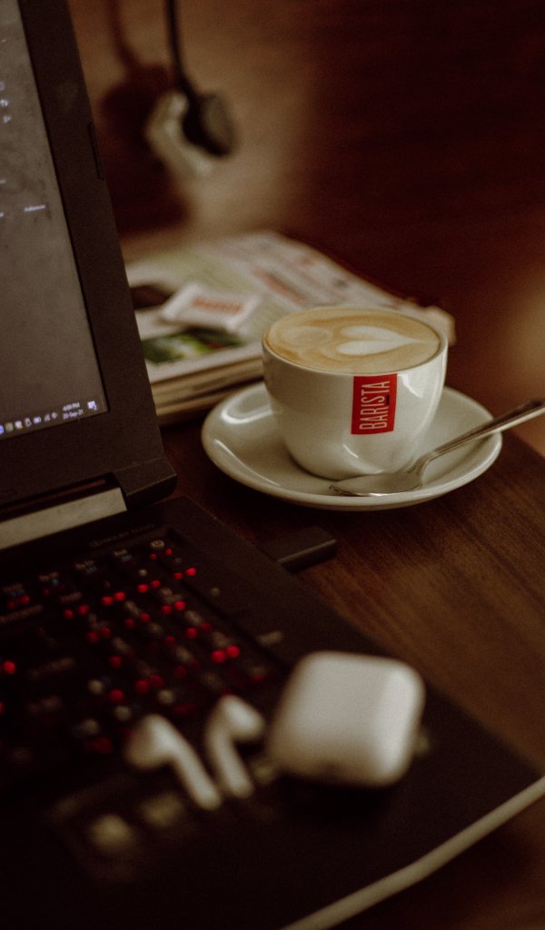 ноутбук, кофе, рабочее место