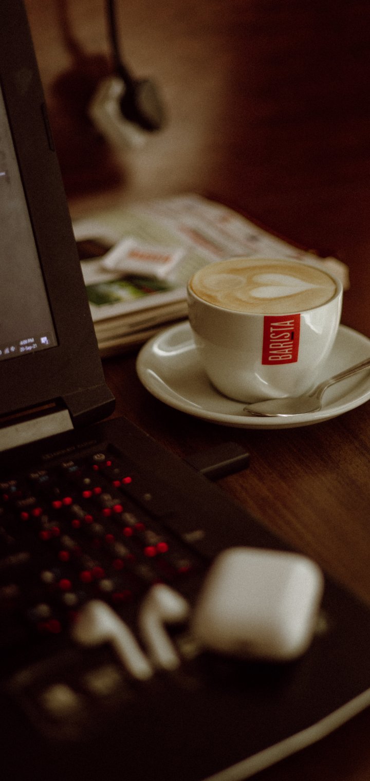 Обои: чашечка кофе, рабочее место - 720x1520