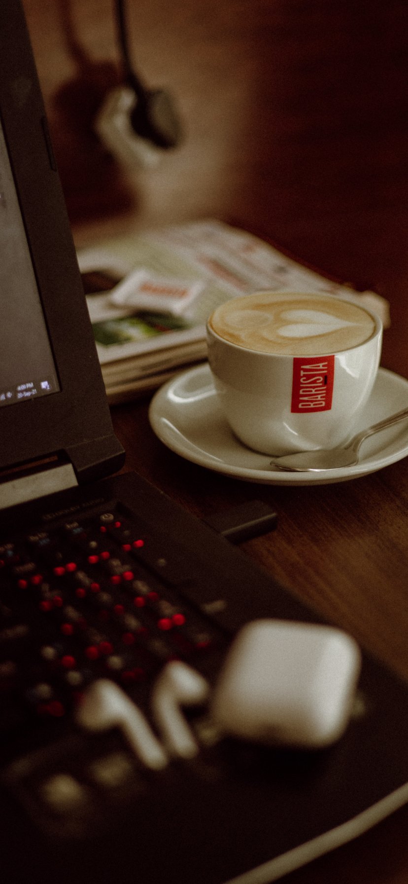 Обои: чашечка кофе, рабочее место - 828x1792