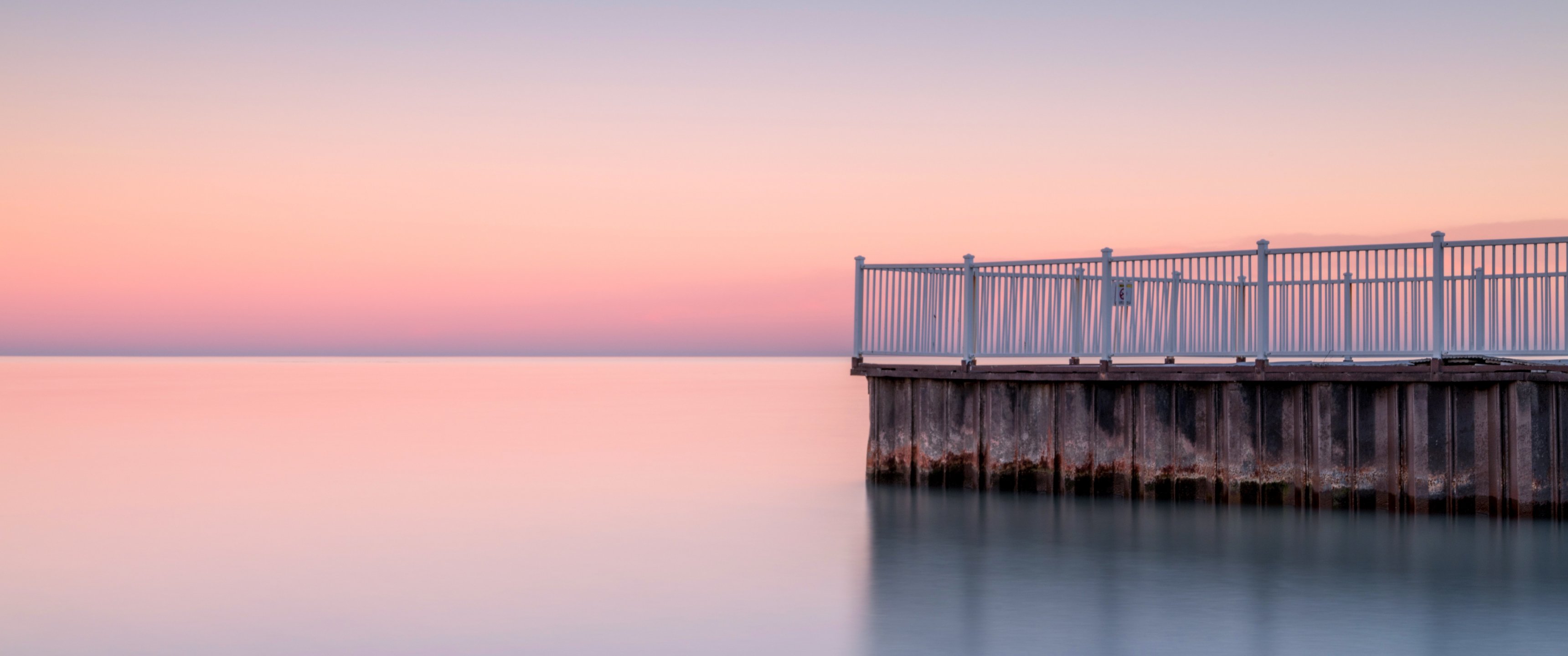 Обои: закат, причал - 3440x1440