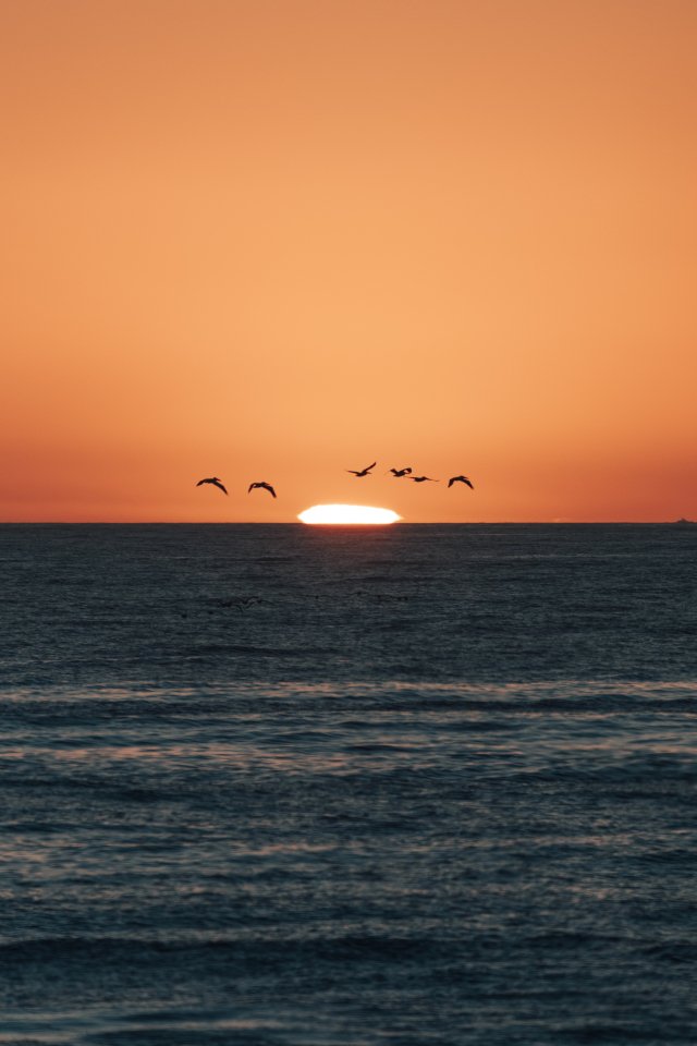 Обои: море, закат, чайки - 640x960