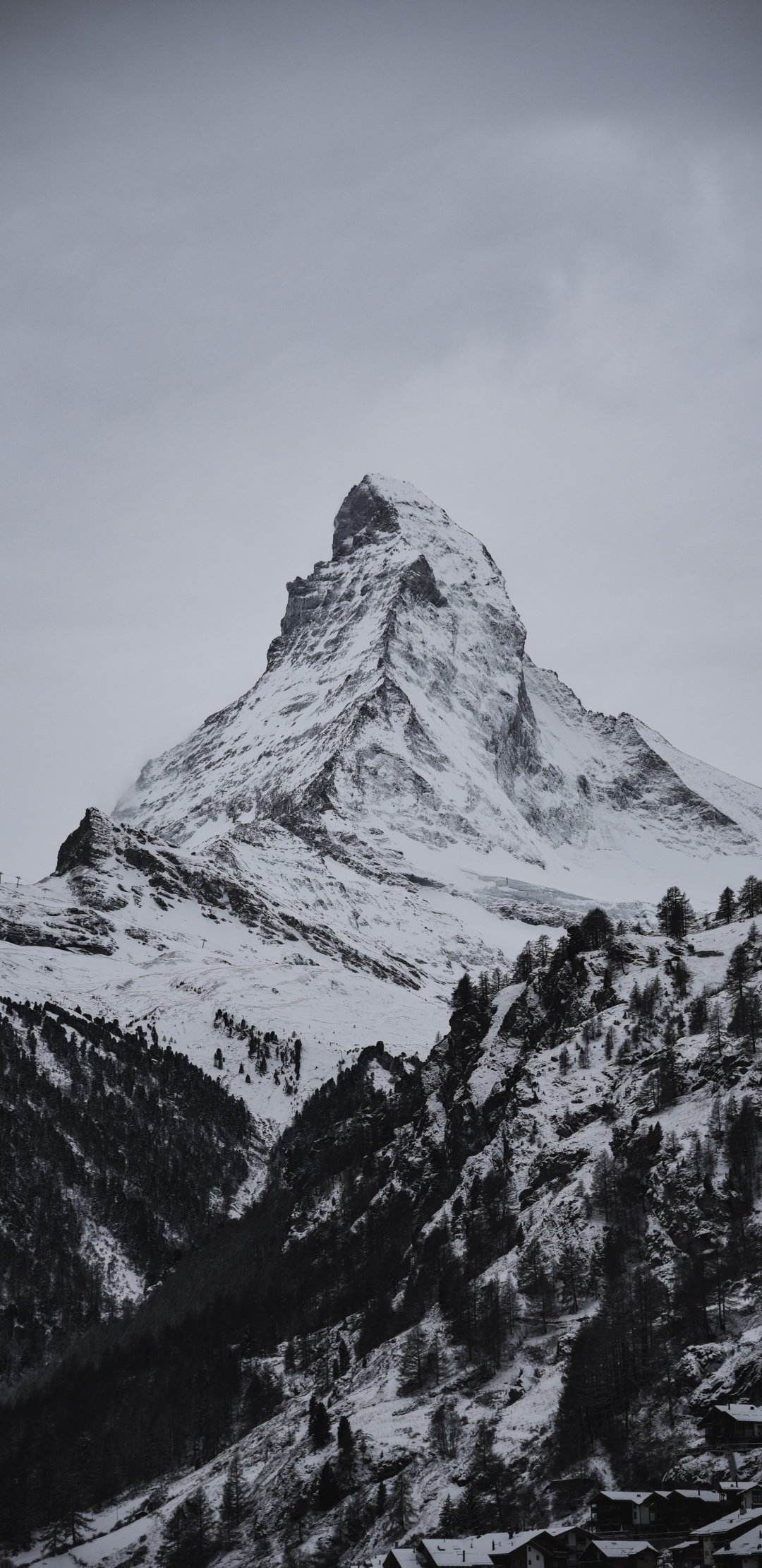 Обои: снежная гора, лес - 1080x2220