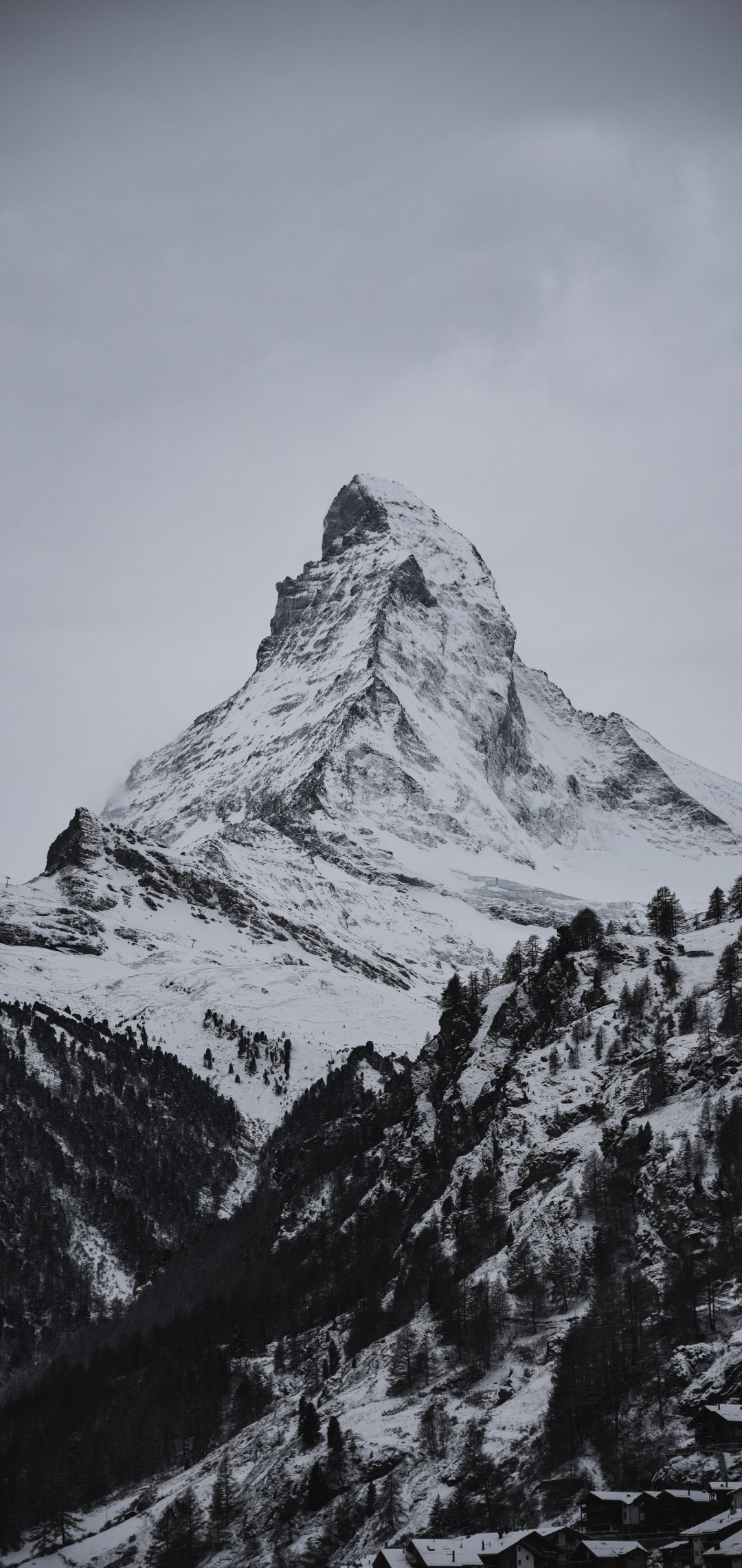 Обои: снежная гора, лес - 1080x2280