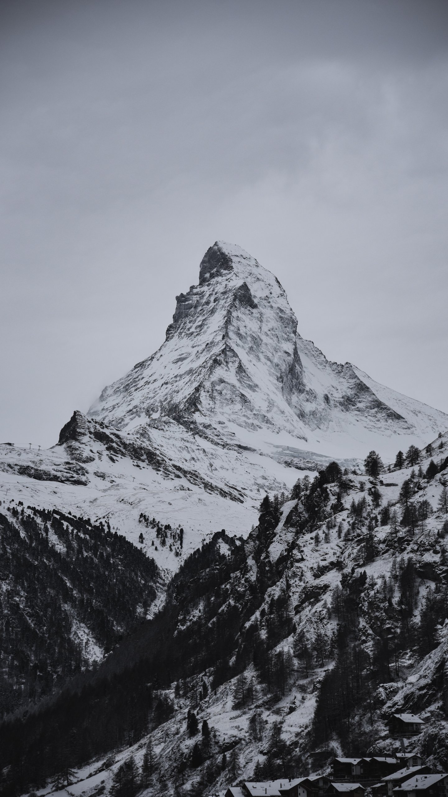 Обои: снежная гора, лес - 1440x2560