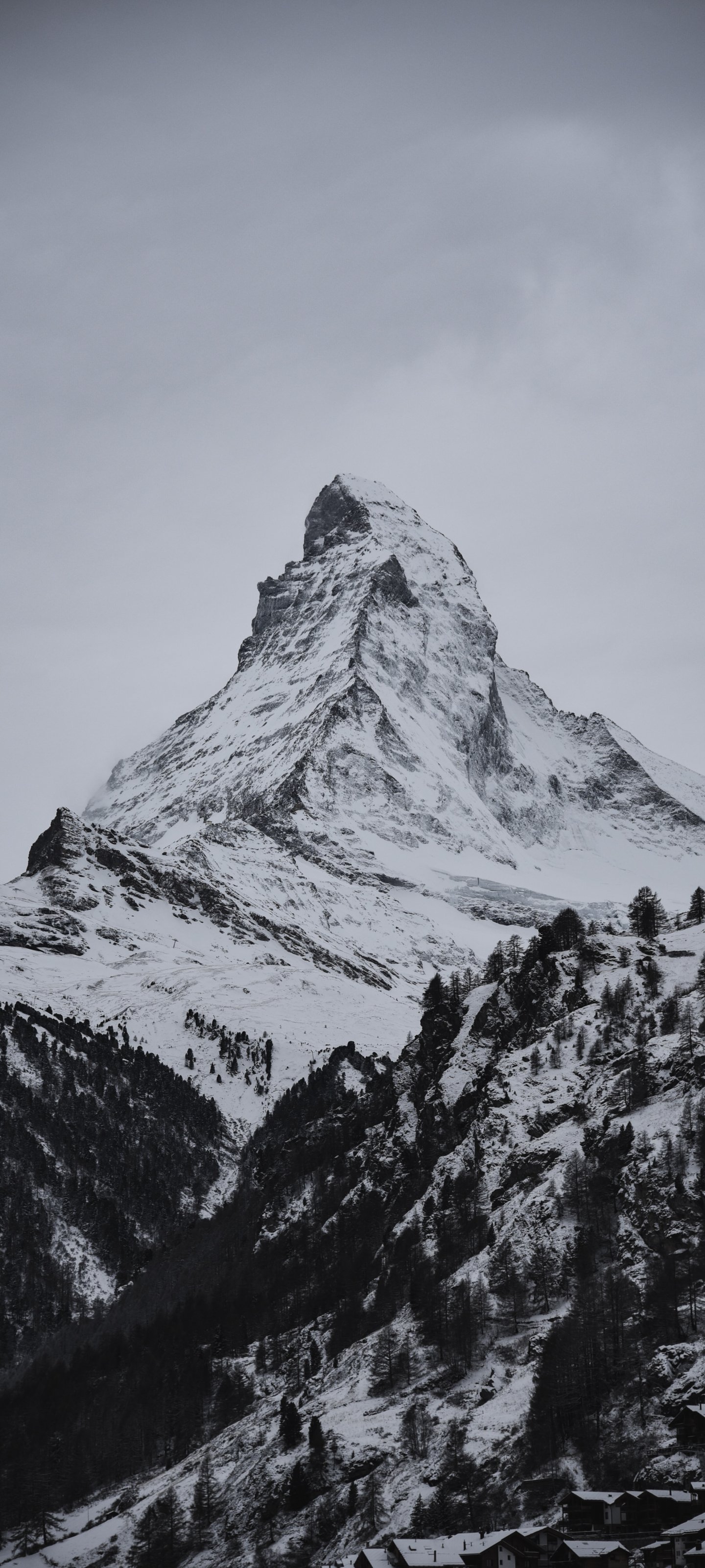 Обои: снежная гора, лес - 1440x3200