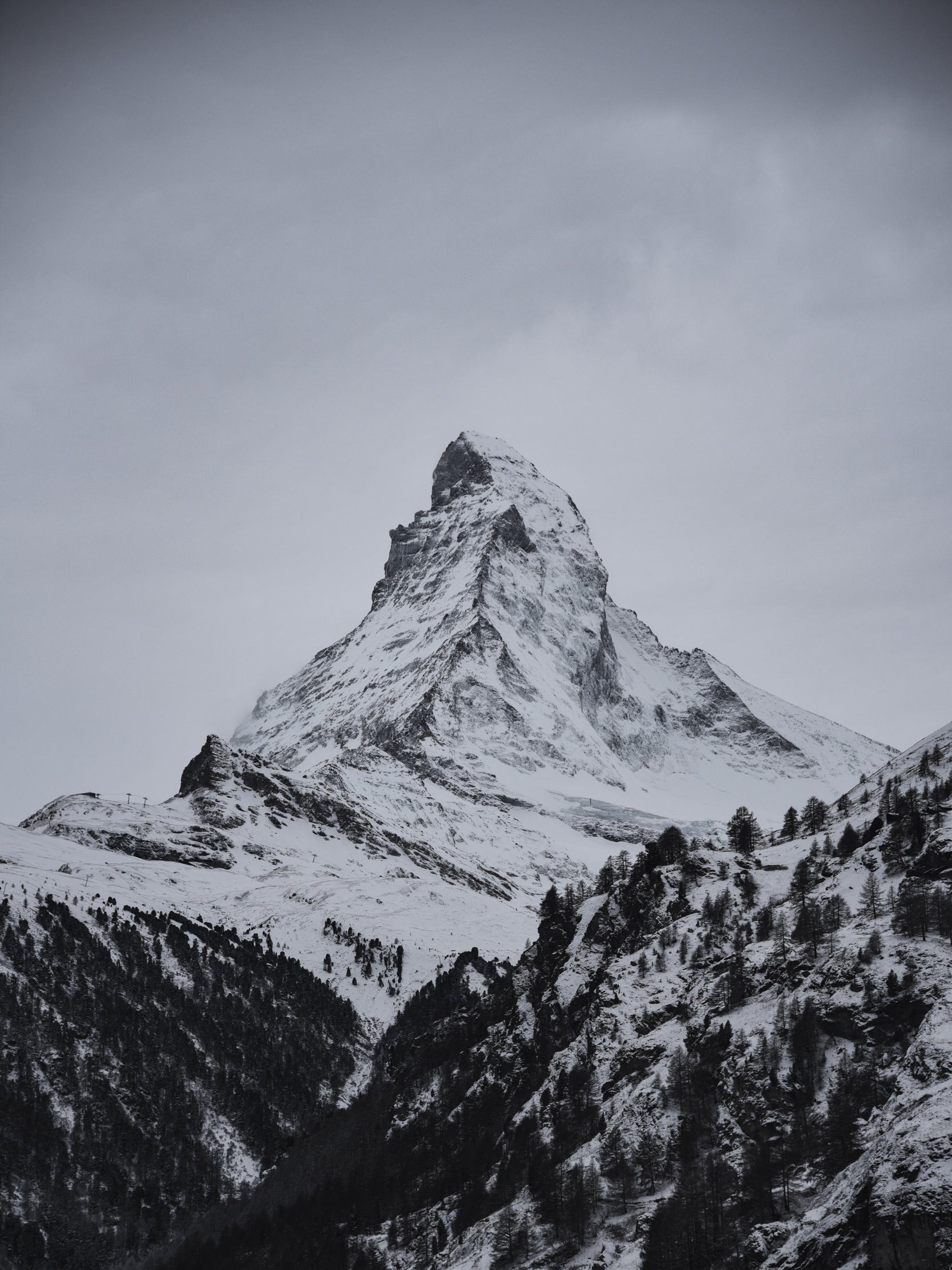 Обои: снежная гора, лес - 1668x2224