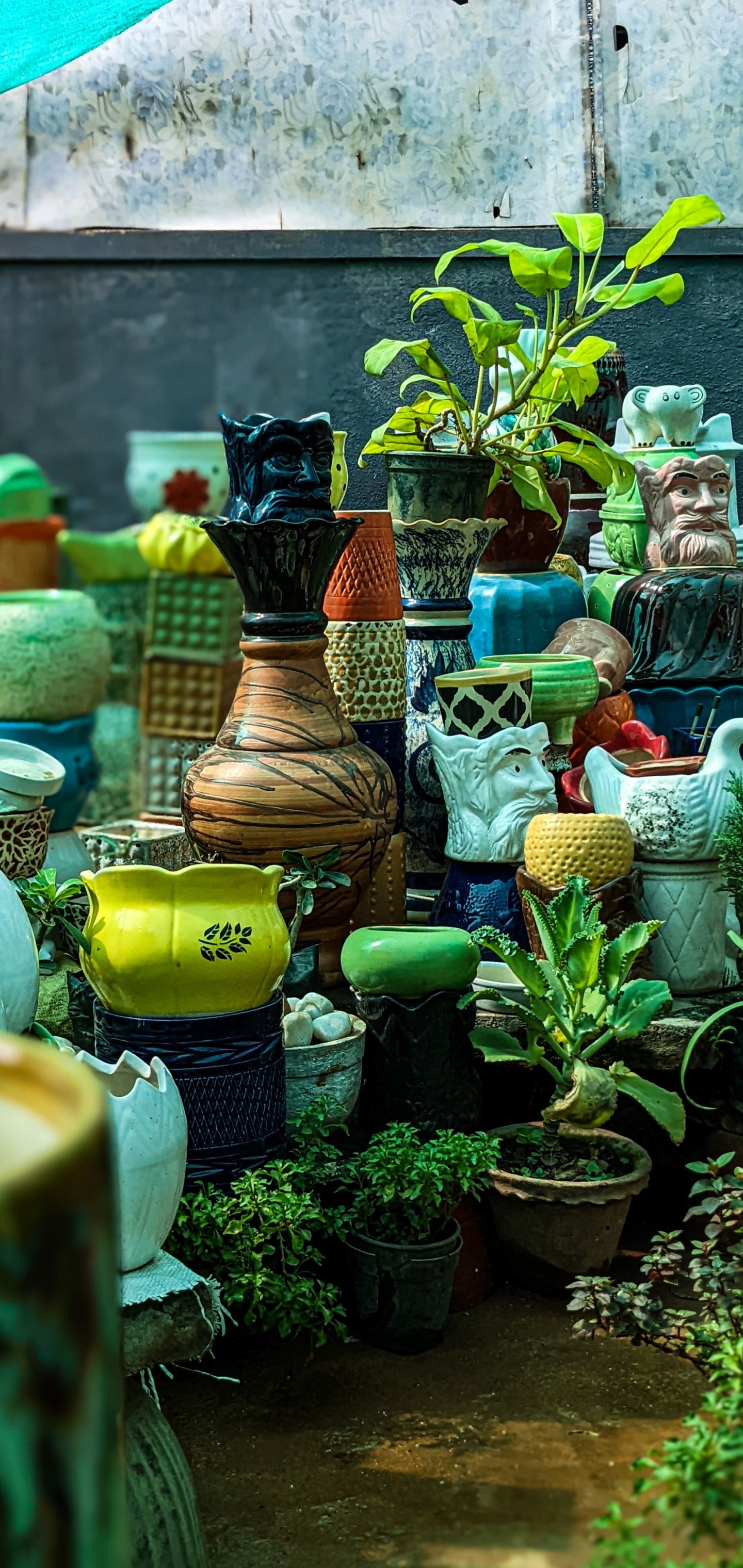Обои: Карнатака, Индия, цветочные горшки - 1440x3040