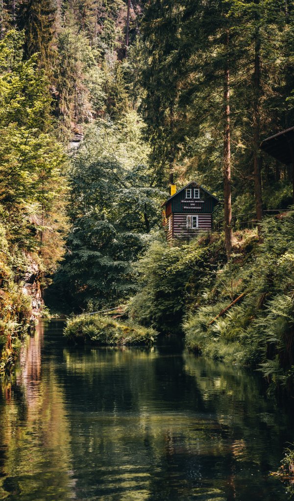 Обои: домик в лесу - 600x1024