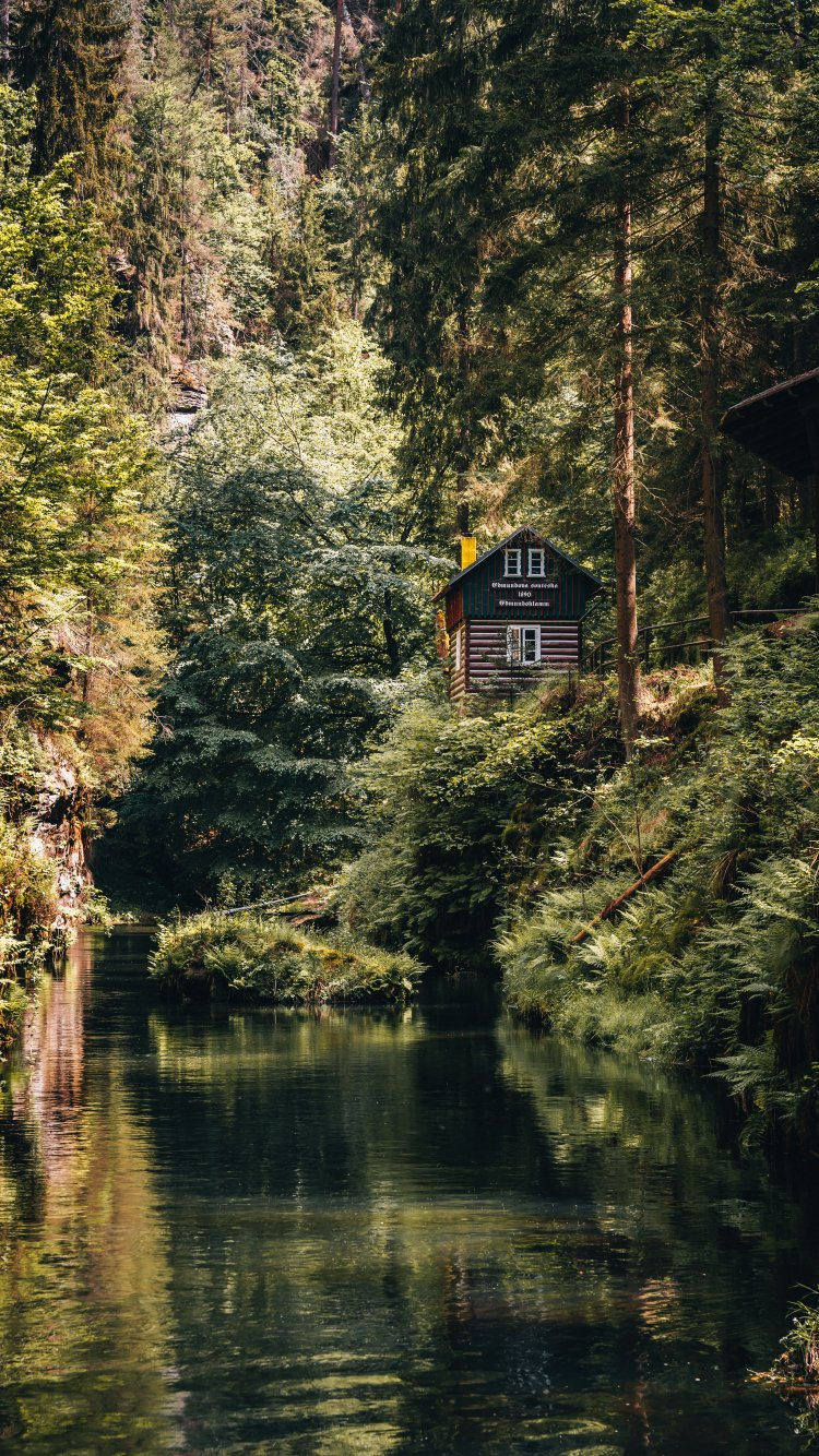 Обои: домик в лесу - 750x1334