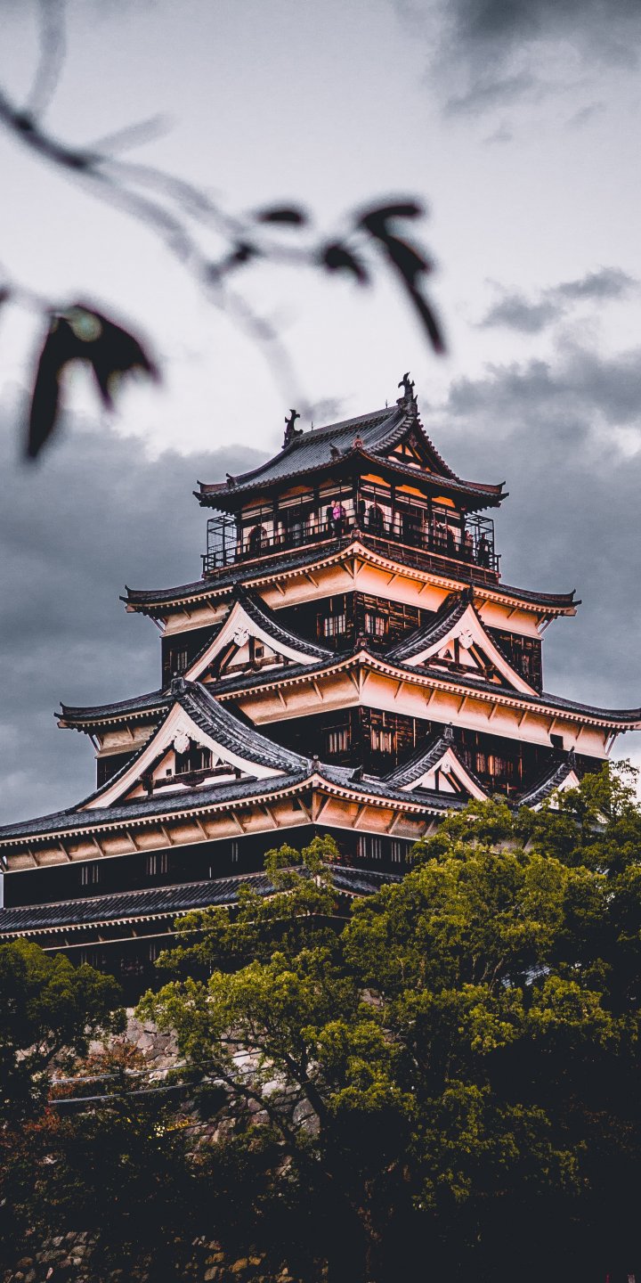 Обои: Замок Хиросима, храм, Япония - 720x1440