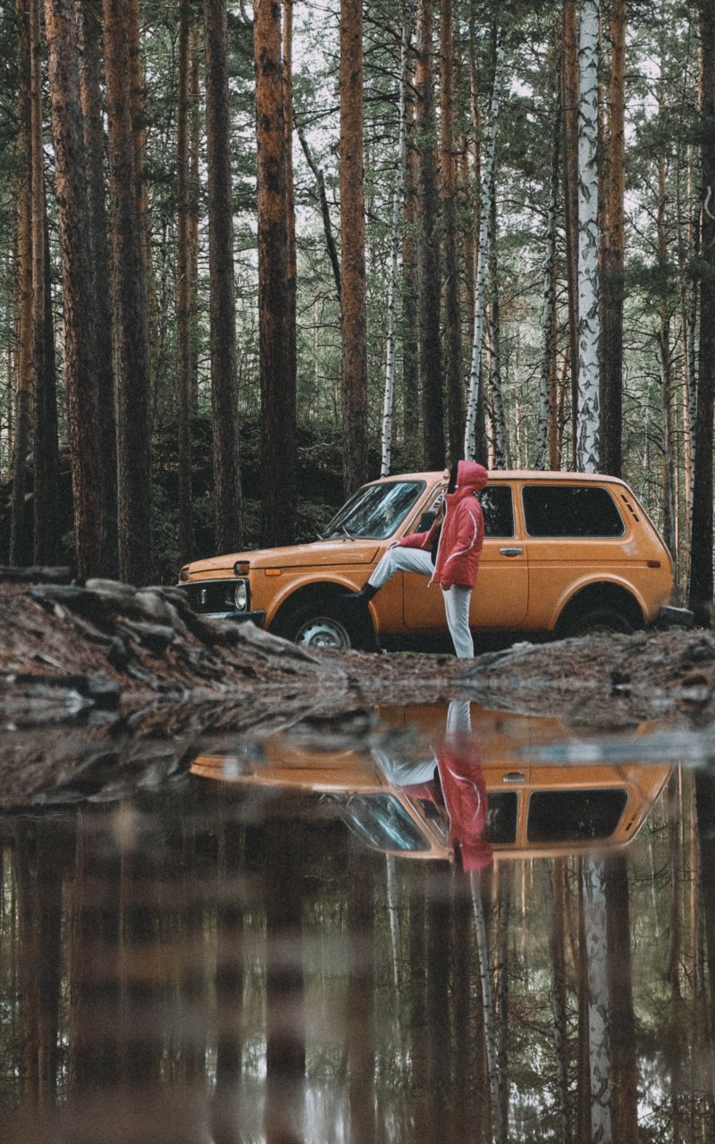 Обои: в лесу, на машине - 800x1280