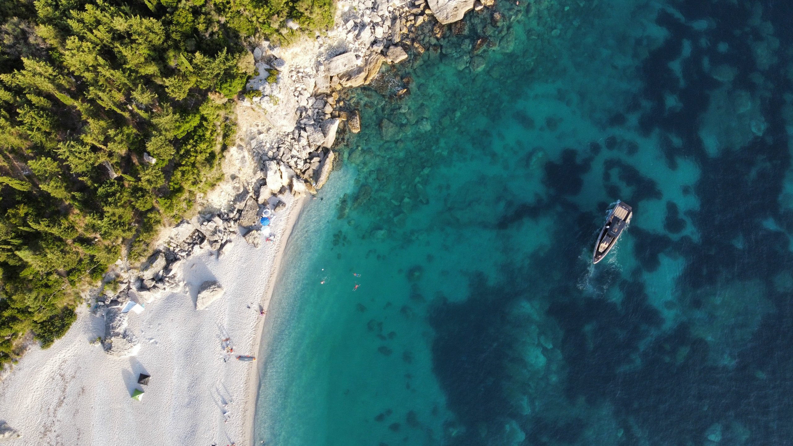 лазурное море, лодка, вид сверху