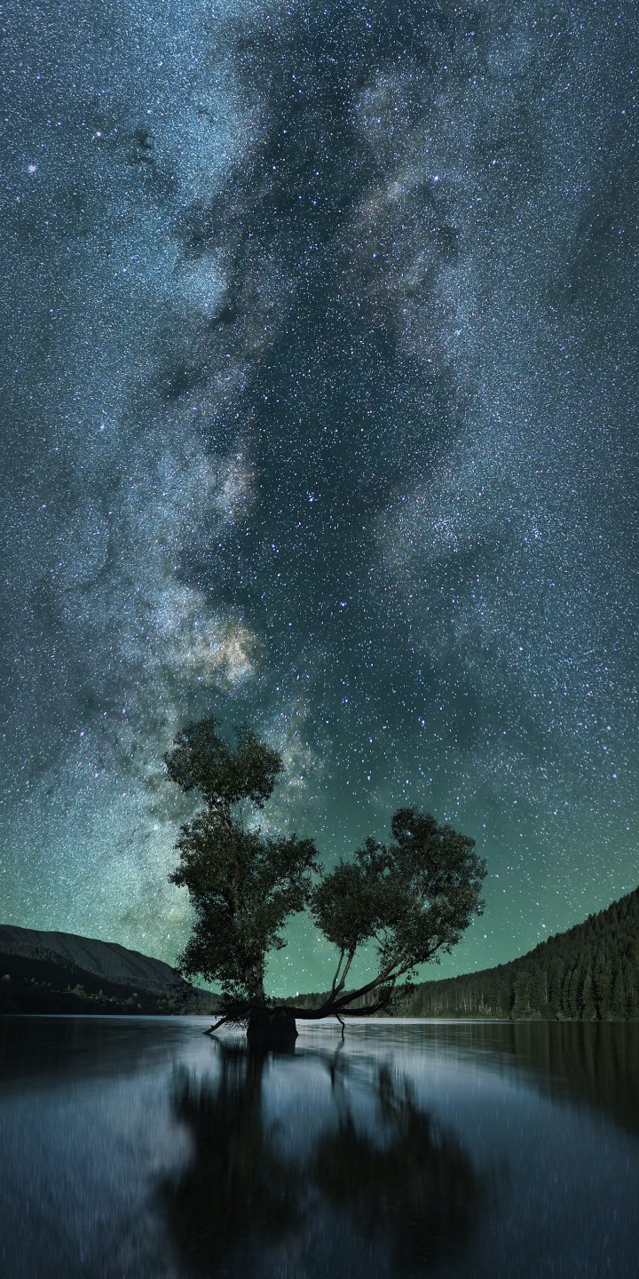 Обои: звездное небо, звезды, озеро - 720x1440