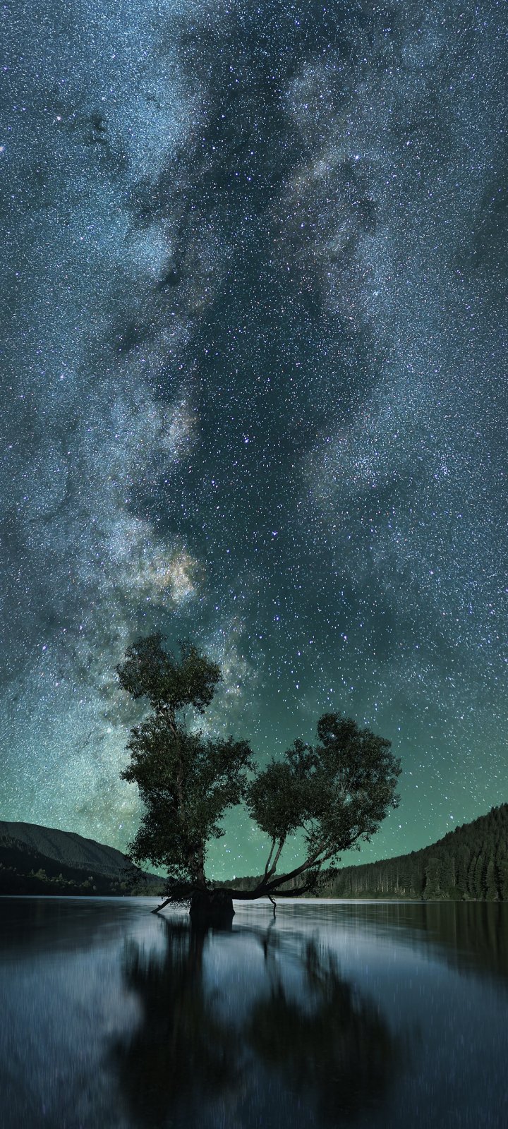Обои: звездное небо, звезды, озеро - 720x1600