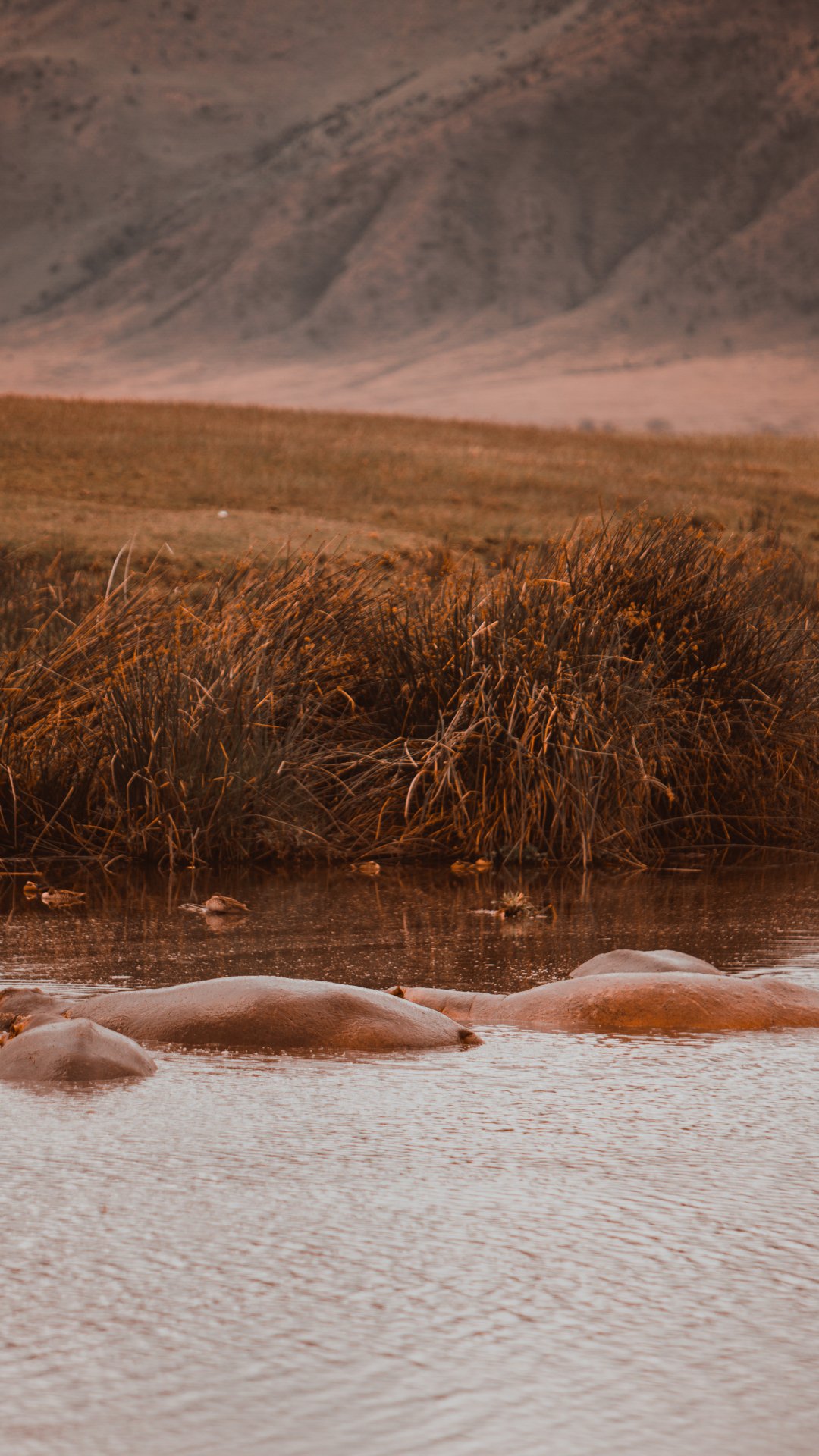 Обои: Кратер Нгоронгоро, Танзания, бегемонты - 1080x1920
