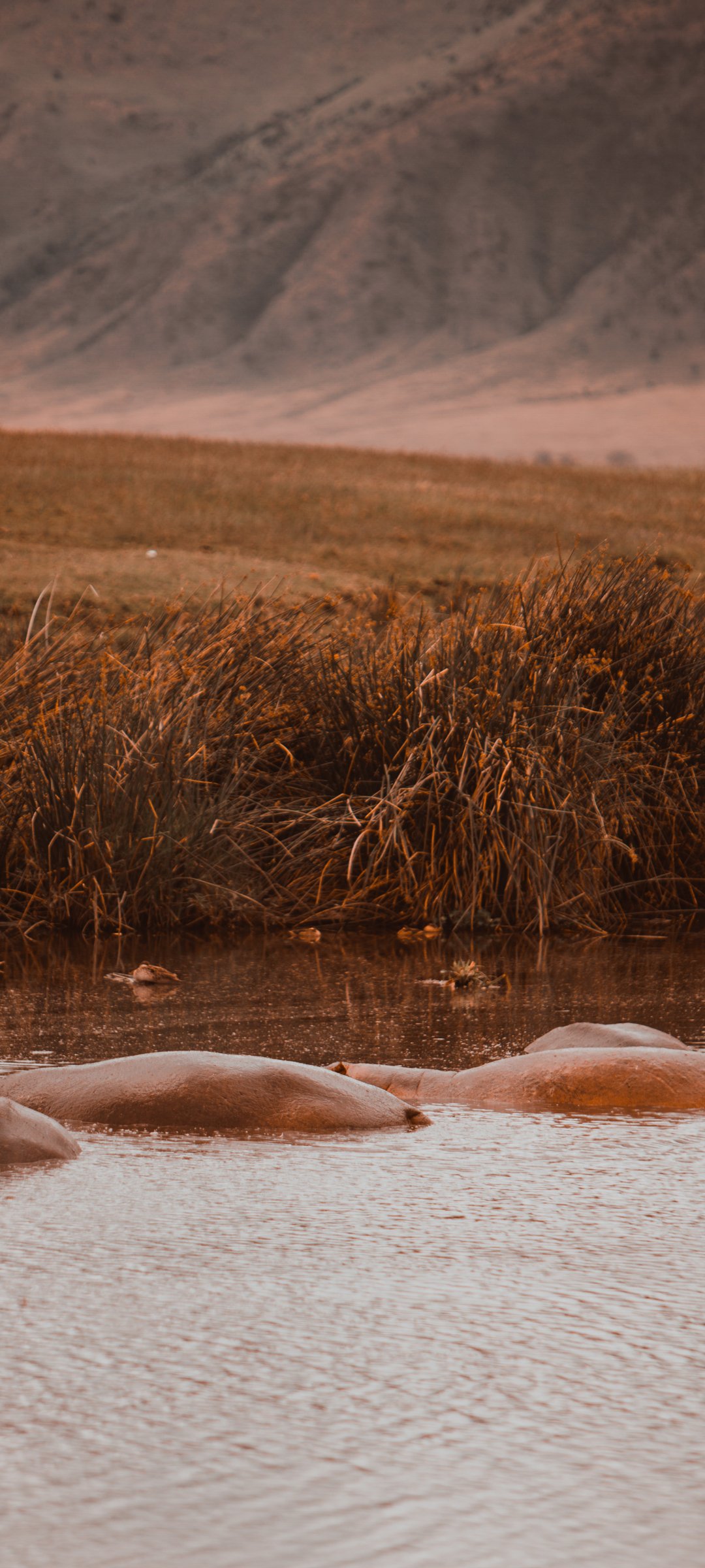 Обои: Кратер Нгоронгоро, Танзания, бегемонты - 1080x2400