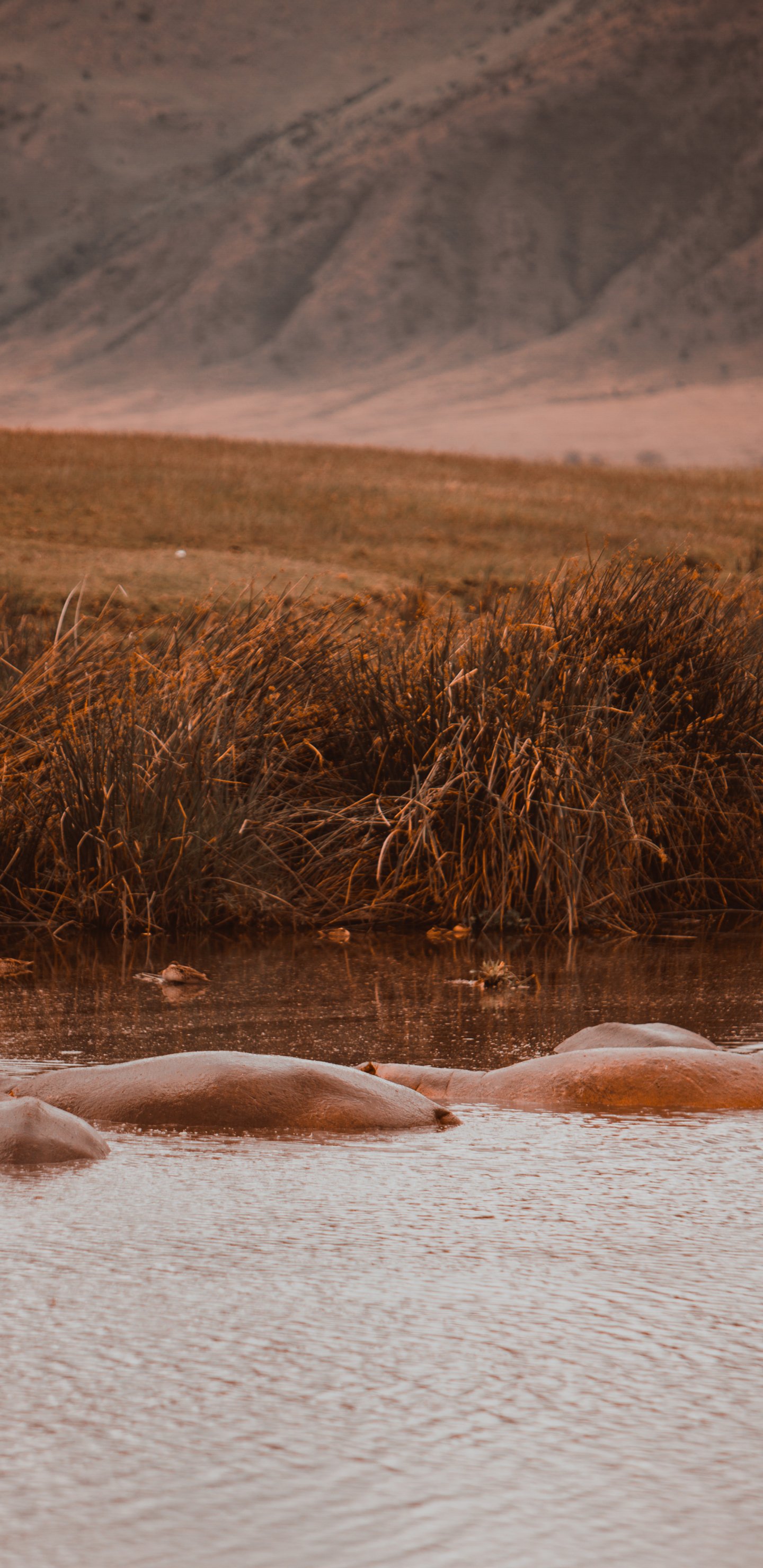 Обои: Кратер Нгоронгоро, Танзания, бегемонты - 1440x2960