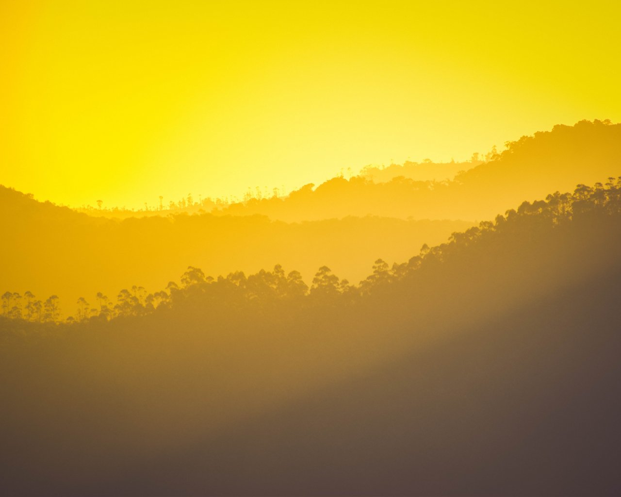 Обои: желтый закат, над лесом - 1280x1024