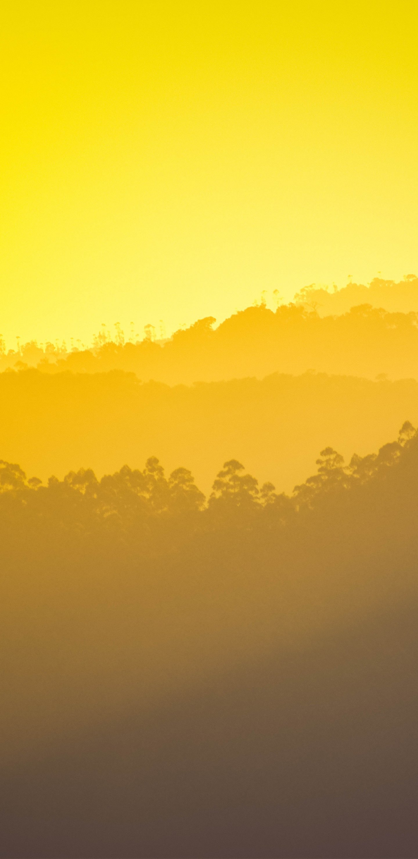 Обои: желтый закат, над лесом - 1440x2960