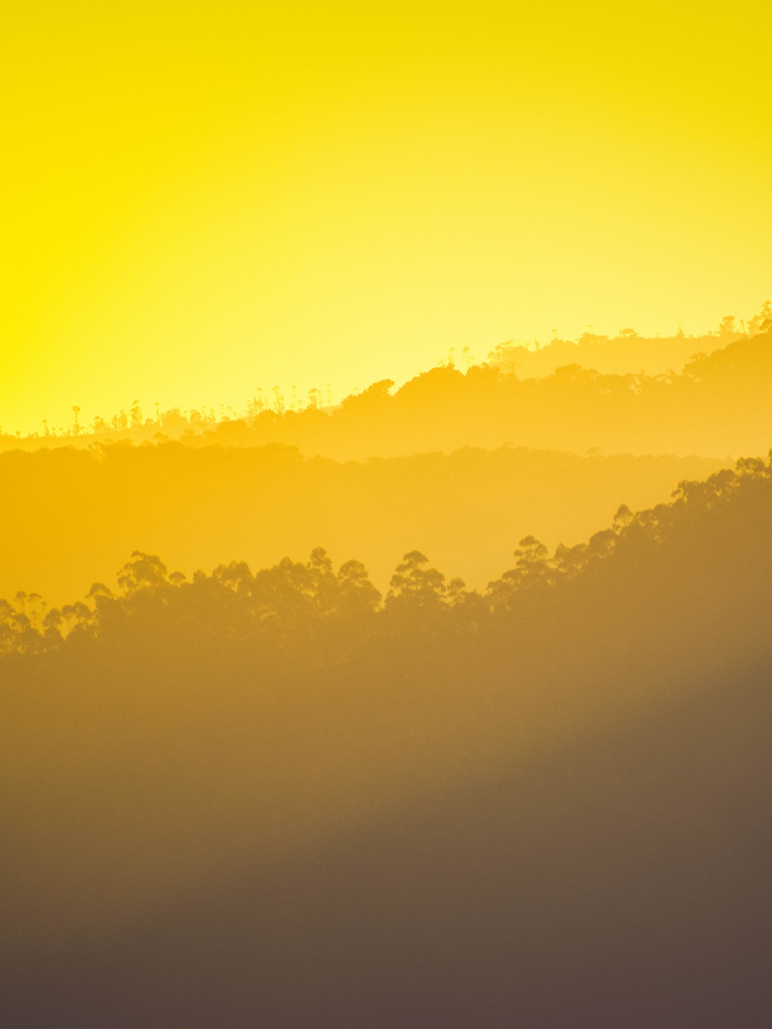 Обои: желтый закат, над лесом - 1536x2048