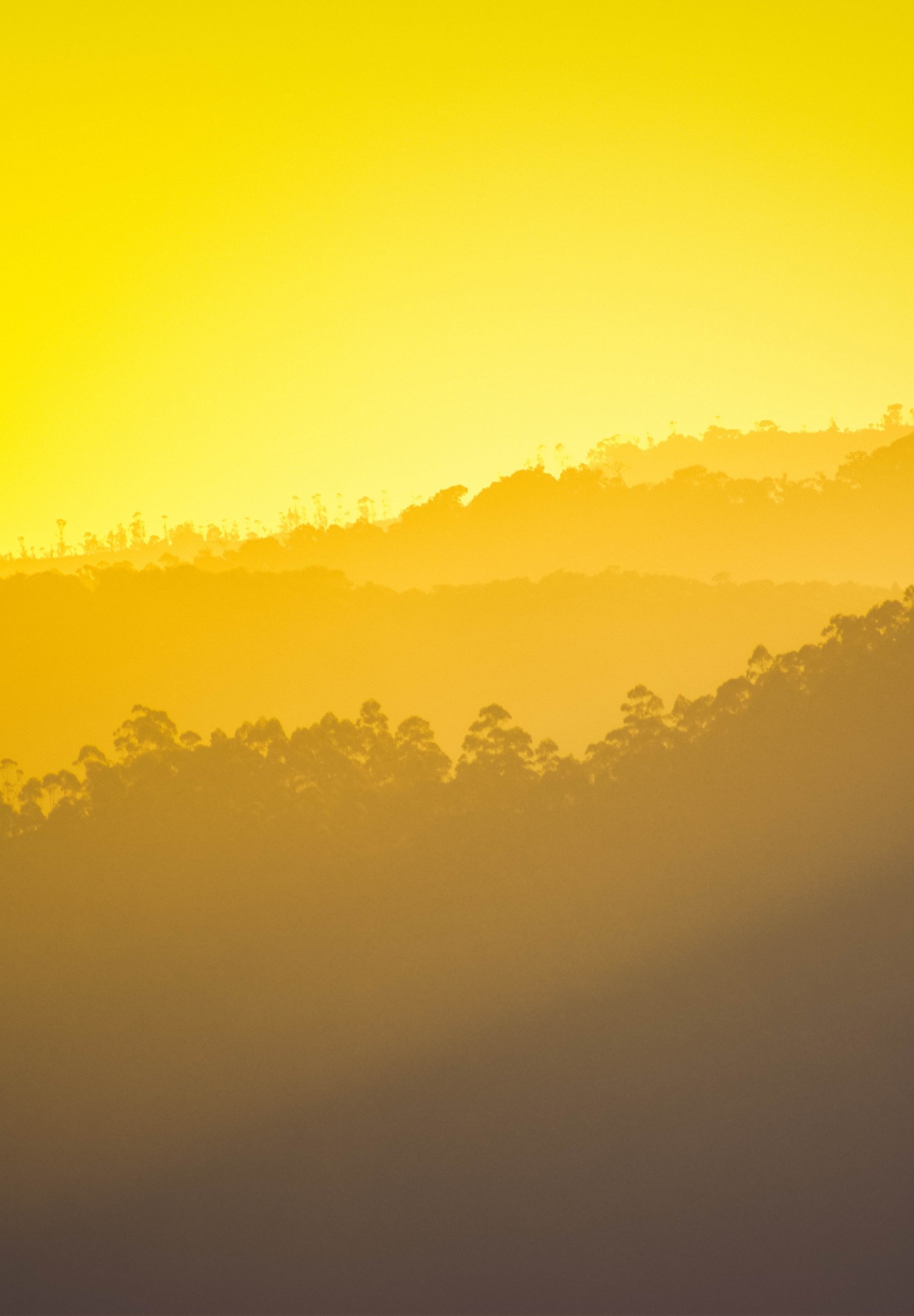 Обои: желтый закат, над лесом - 1640x2360