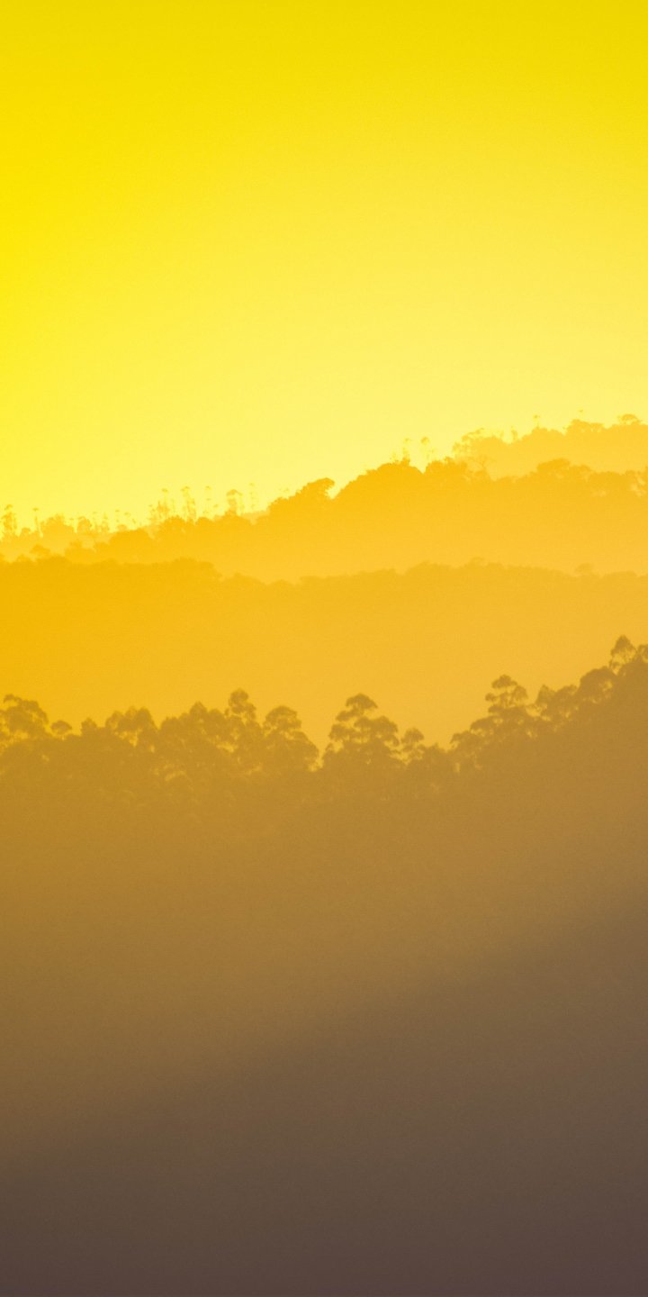 Обои: желтый закат, над лесом - 720x1440