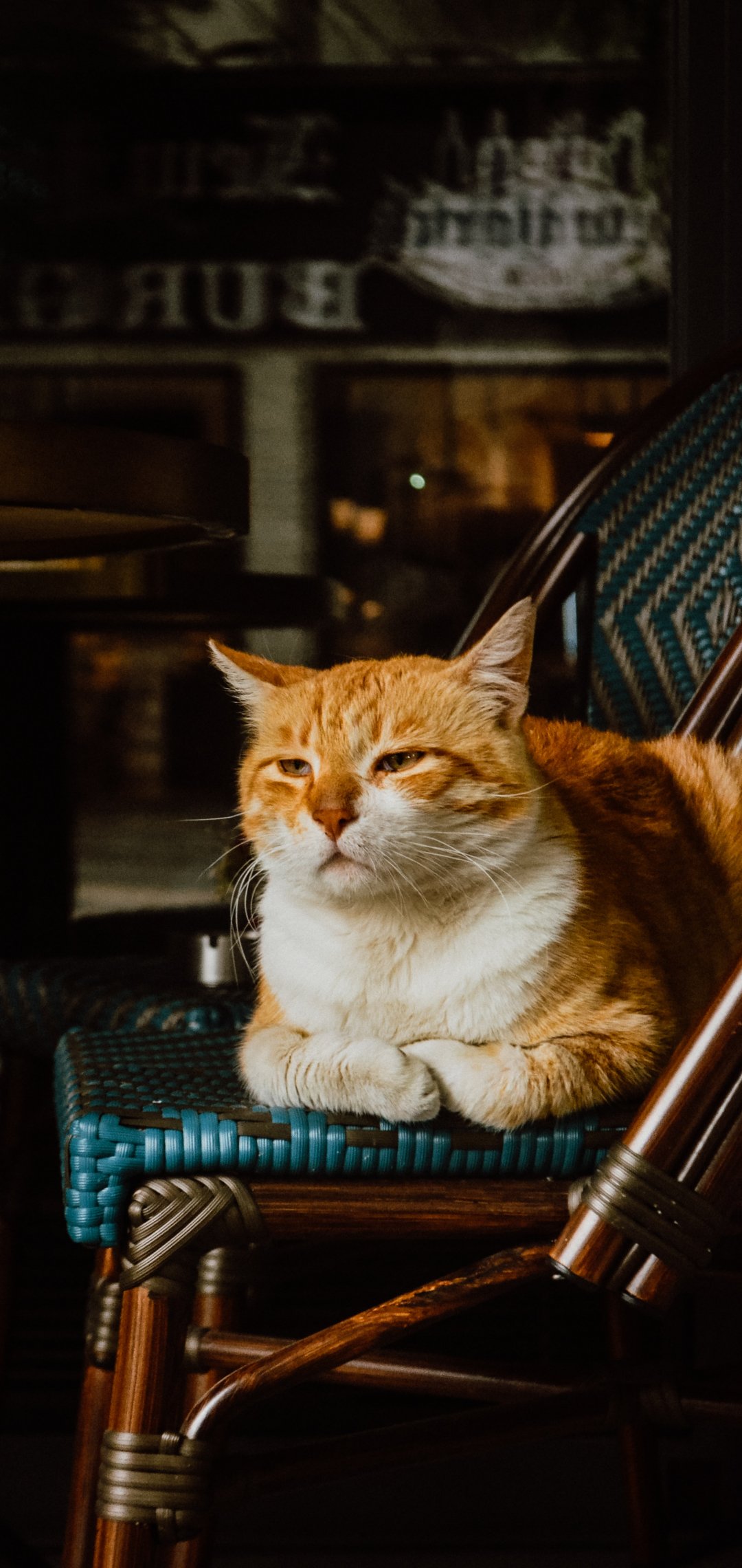 Обои: кафе, кошка - 1080x2280