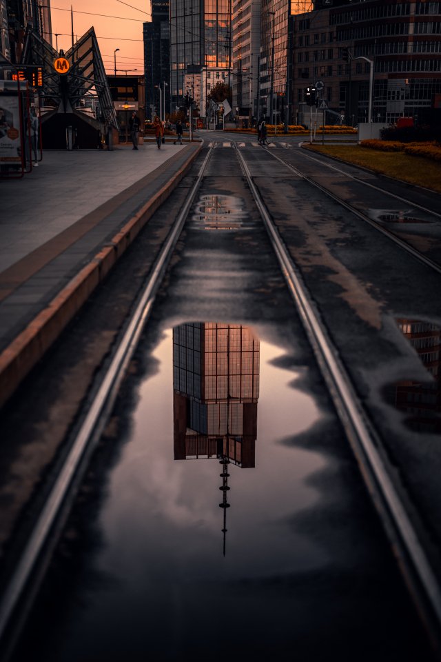 Варшава, Польша Варшава Польша уличная фотография архитектура современный город современная архитектура ночные огни большой город городской пейзаж город ночью ночь ночное фото ночной город дождливый день дождь Польша варшава строительство мегаполис Лондон строительство городской тротуар человек