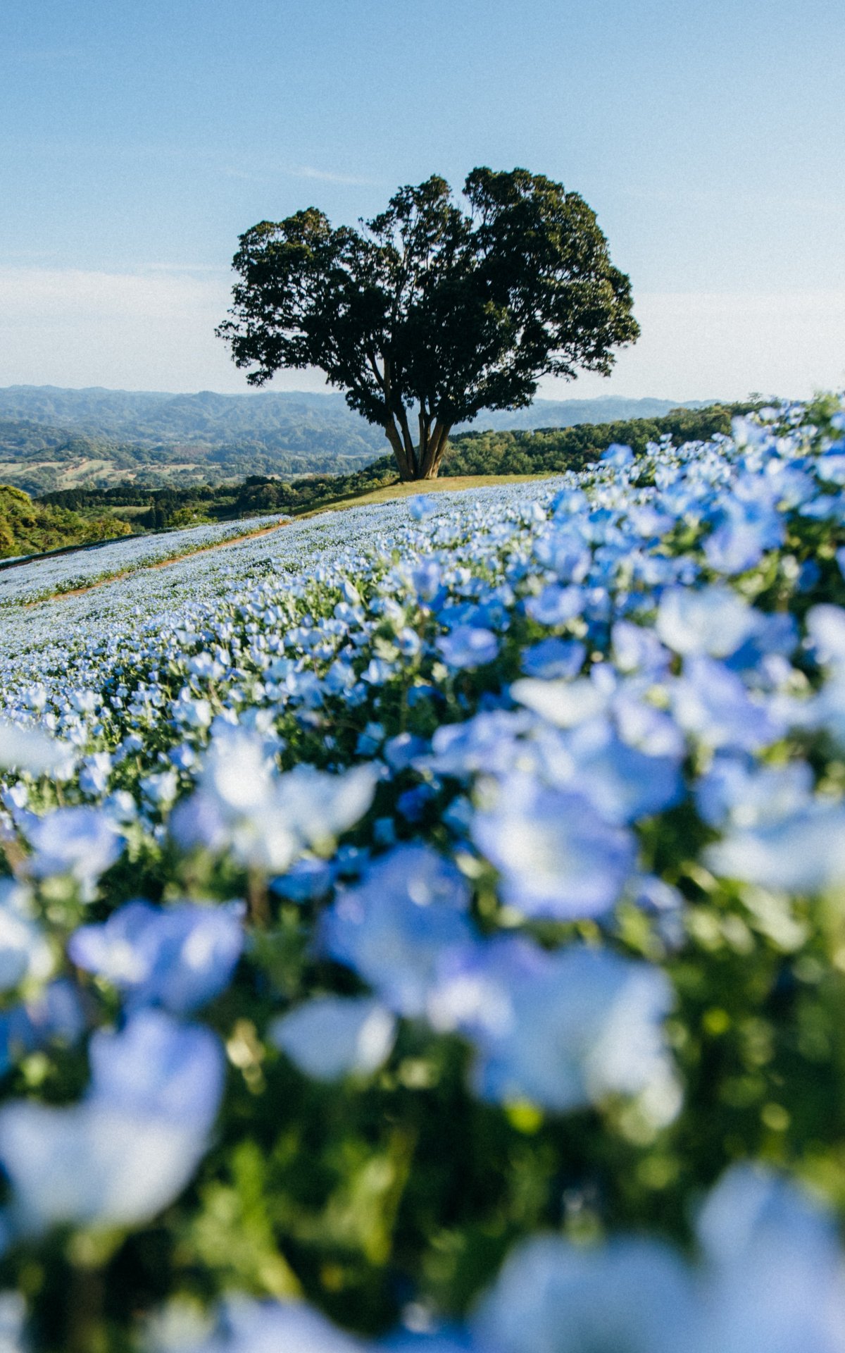 Обои: цветочное поле, дерево - 1200x1920