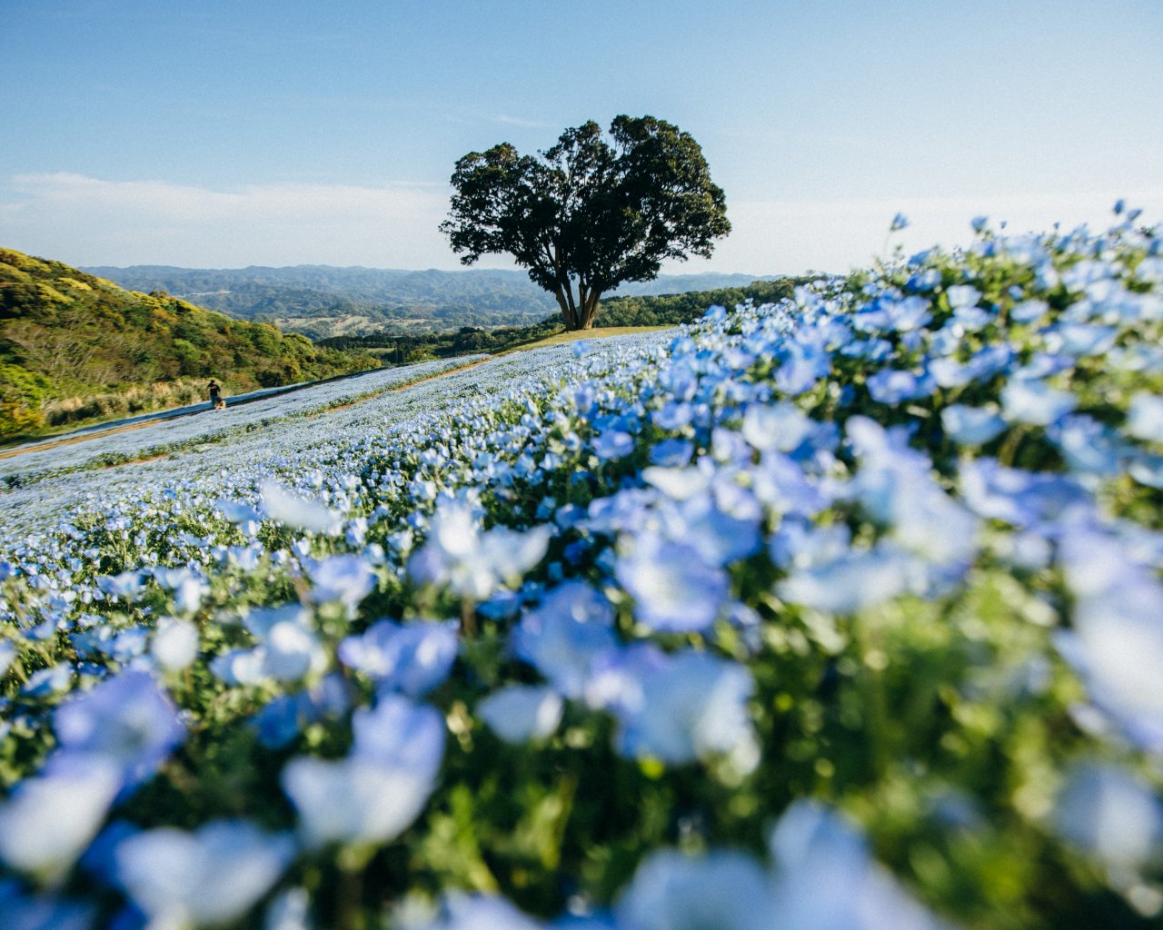Обои: цветочное поле, дерево - 1280x1024