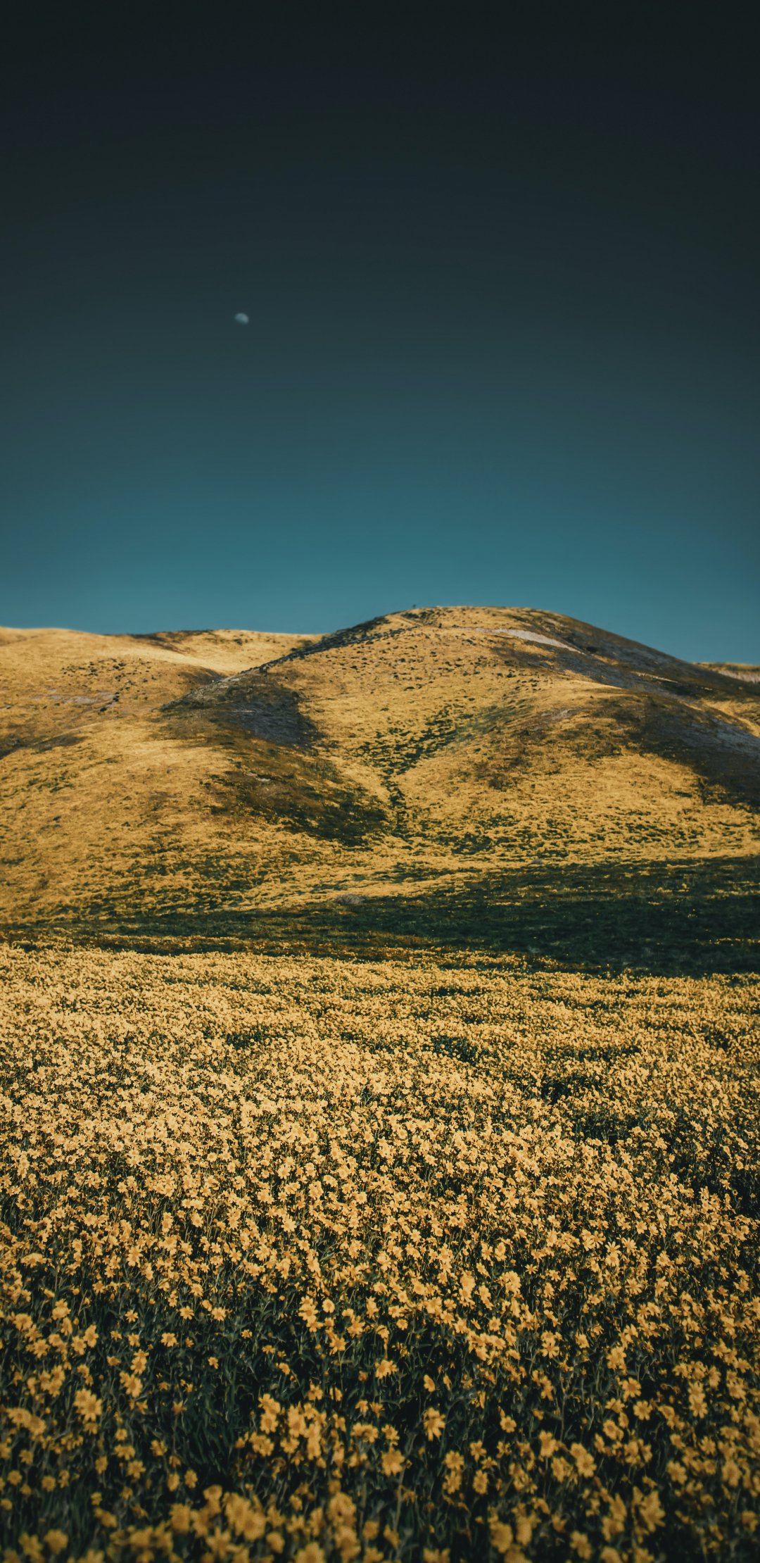 Обои: цветочное поле, холмы - 1080x2220