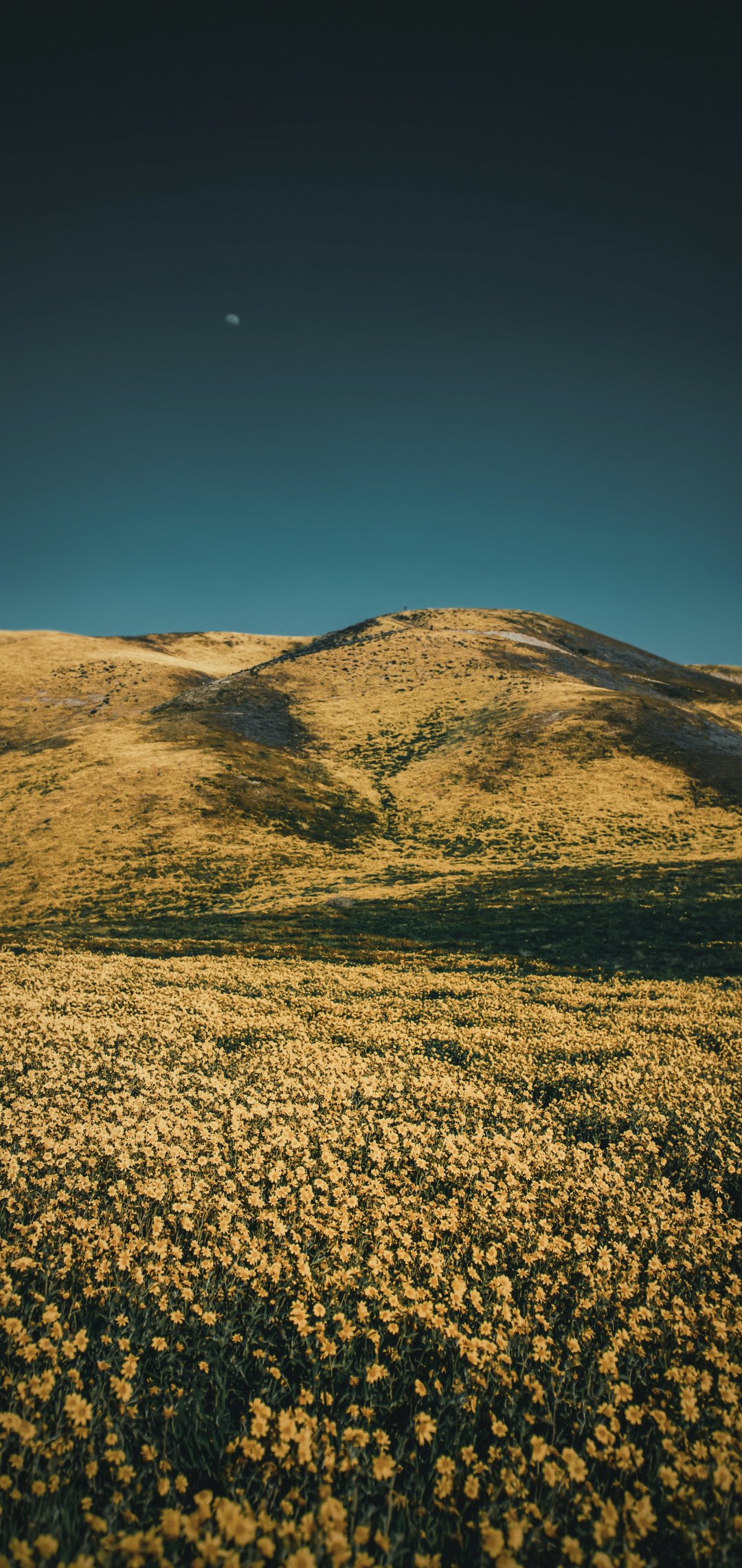 Обои: цветочное поле, холмы - 1080x2280