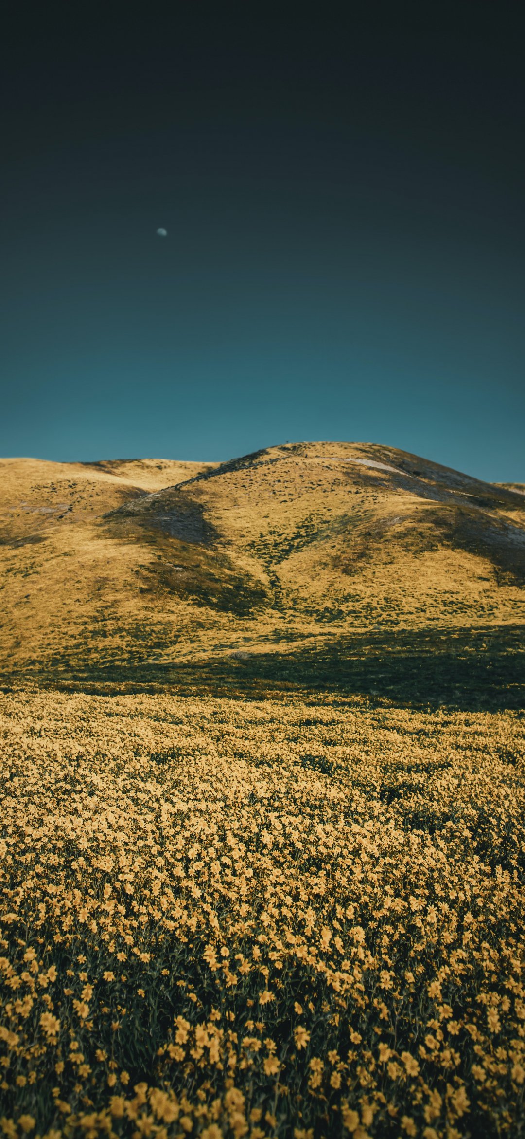 Обои: цветочное поле, холмы - 1080x2340
