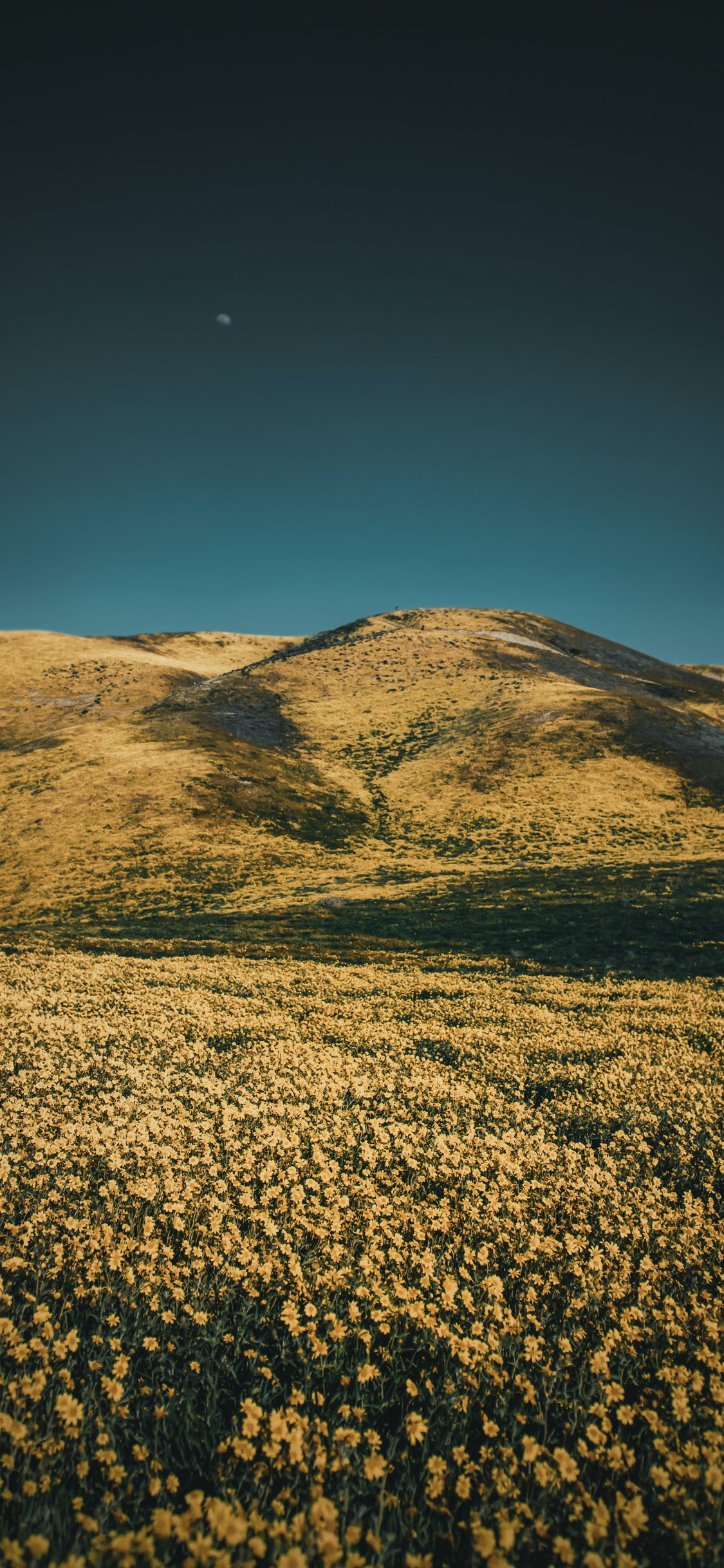 Обои: цветочное поле, холмы - 1125x2436