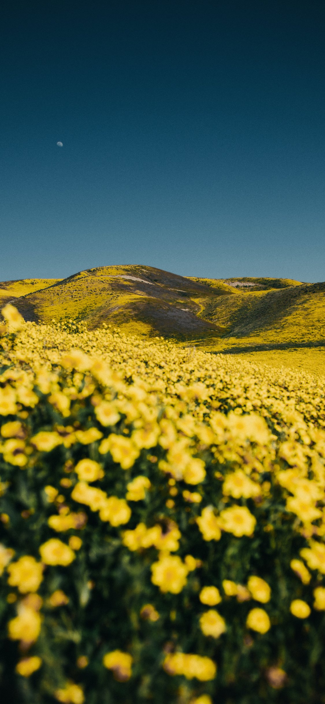 Обои: цветочное поле, холмы - 1125x2436