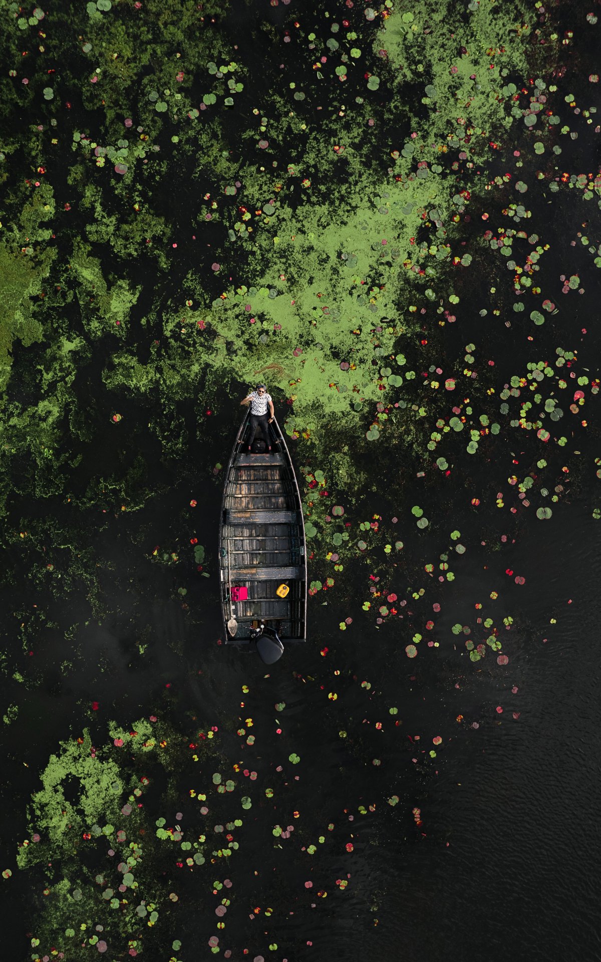 Обои: человек в лодке, над водой - 1200x1920