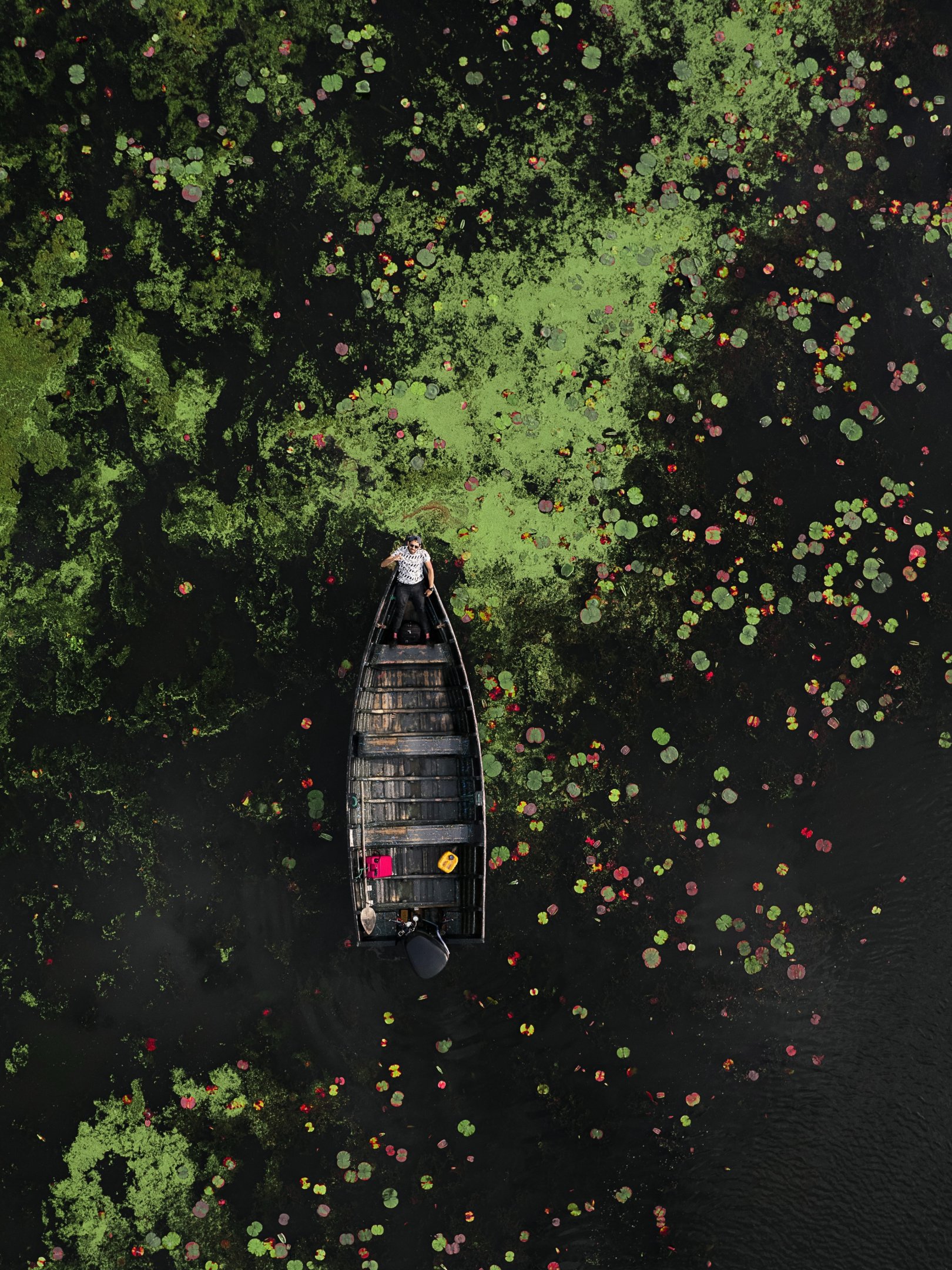 Обои: человек в лодке, над водой - 1620x2160
