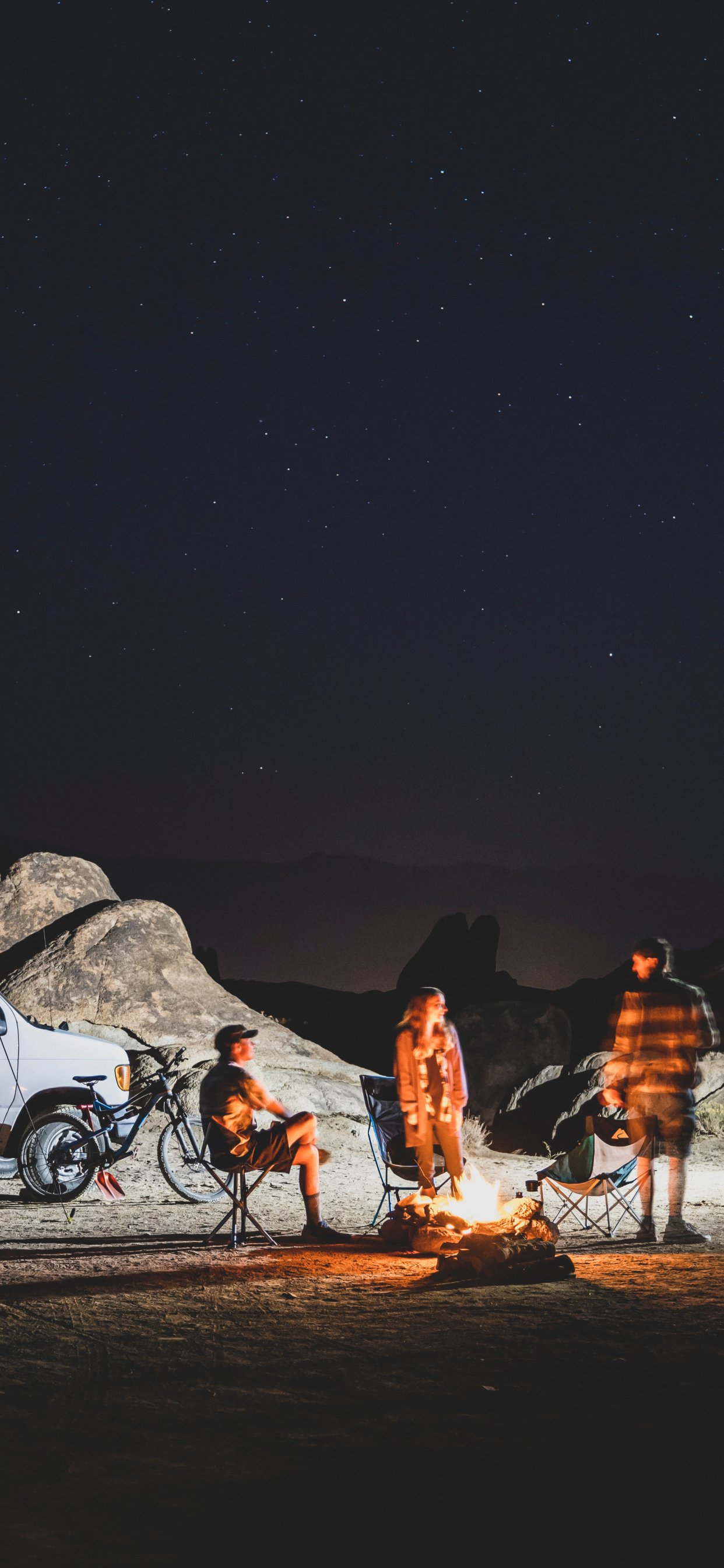 Обои: вечер на природе, у костра - 1242x2688