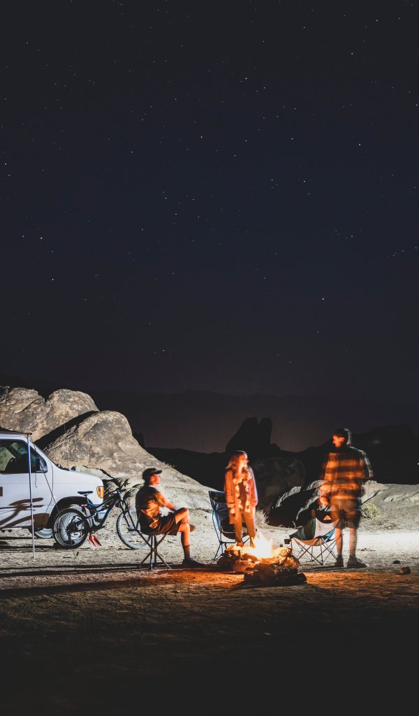 Обои: вечер на природе, у костра - 600x1024