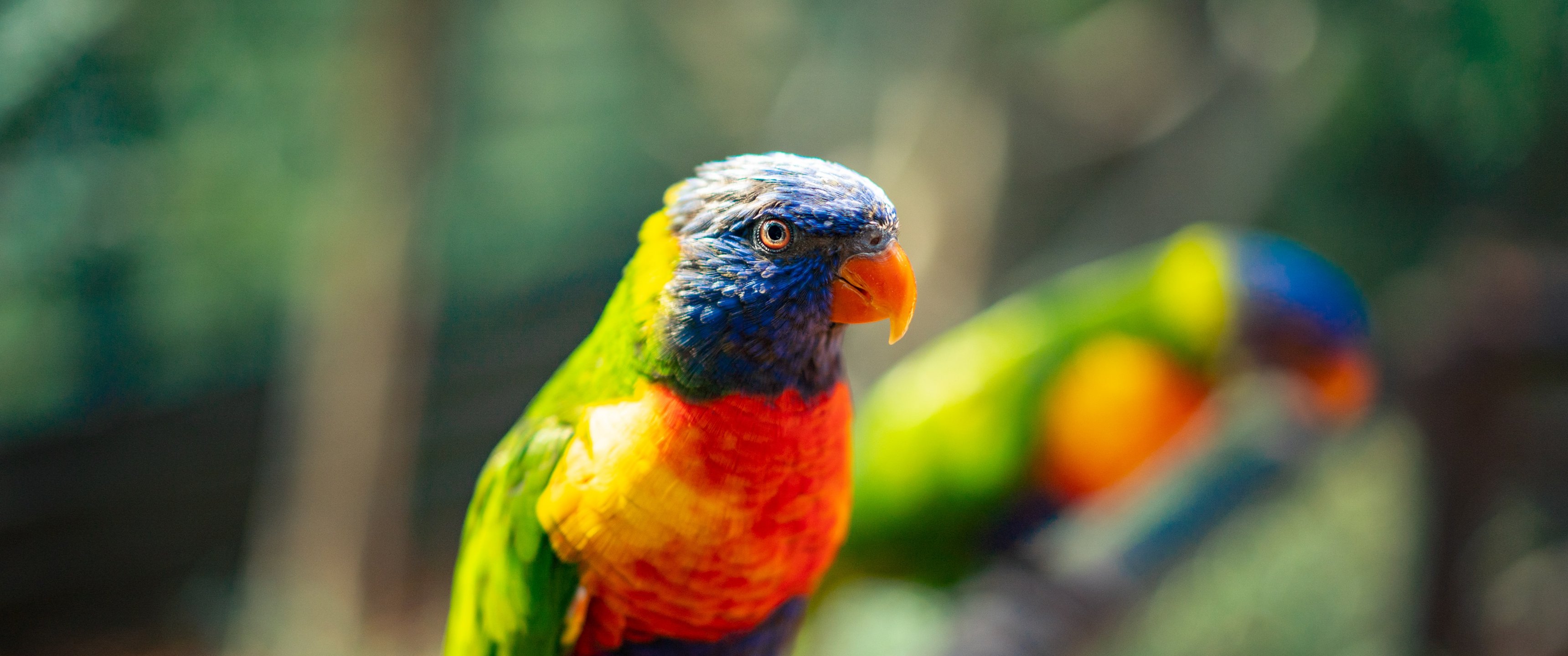 Обои: Зоопарк, Цюрих, Швейцария, попугай - 3440x1440