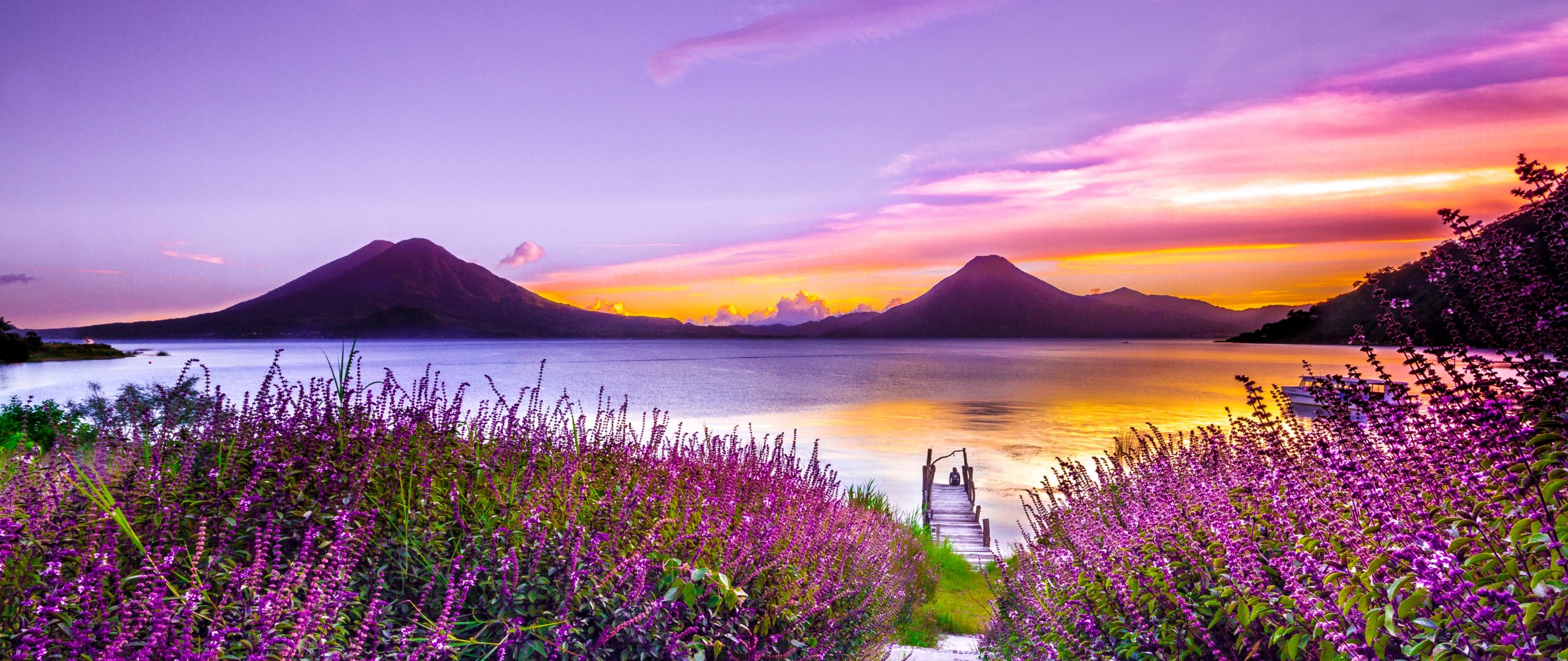 Обои: Озеро Атитлан, Гватемала, озеро - 2560x1080