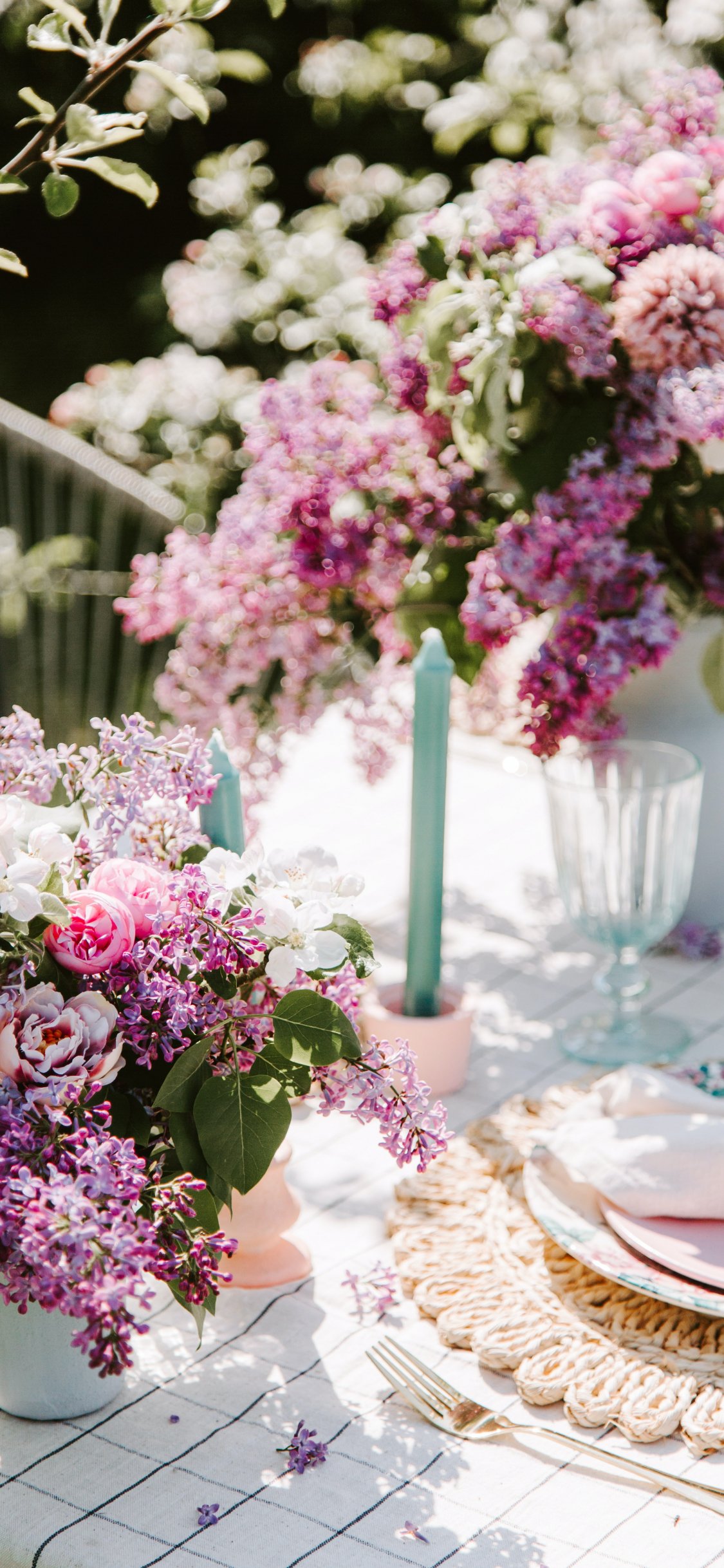 Обои: сервировка стола, сирень - 1125x2436