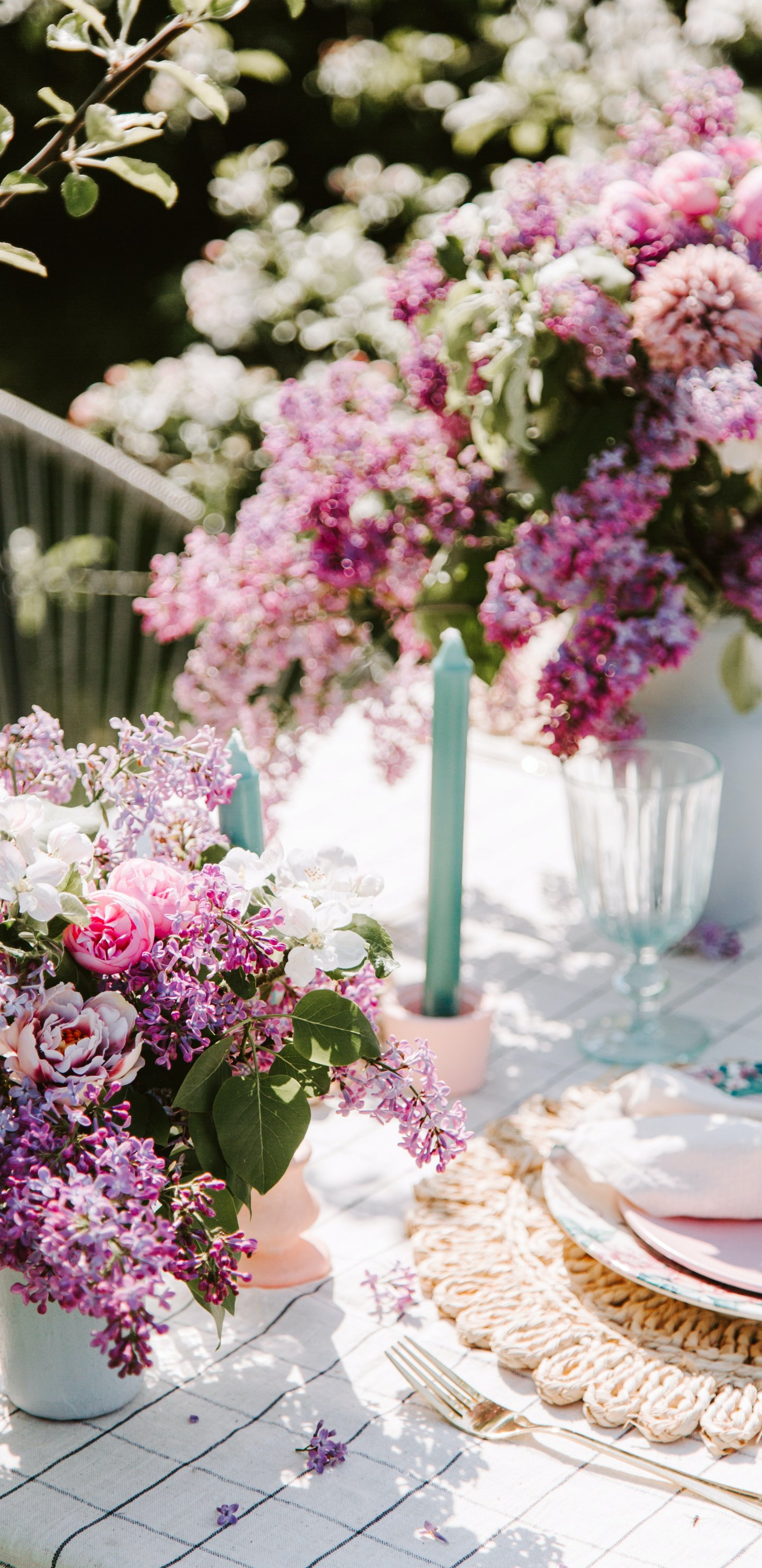 Обои: сервировка стола, сирень - 1440x2960