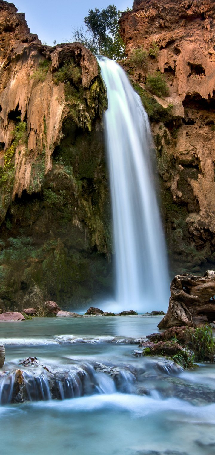 Обои: скала, водопад - 720x1520