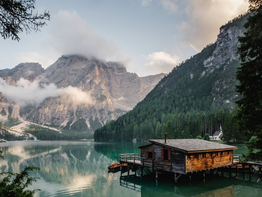 Обои: Озеро Брайес, дом у озера, озеро - 1024x768