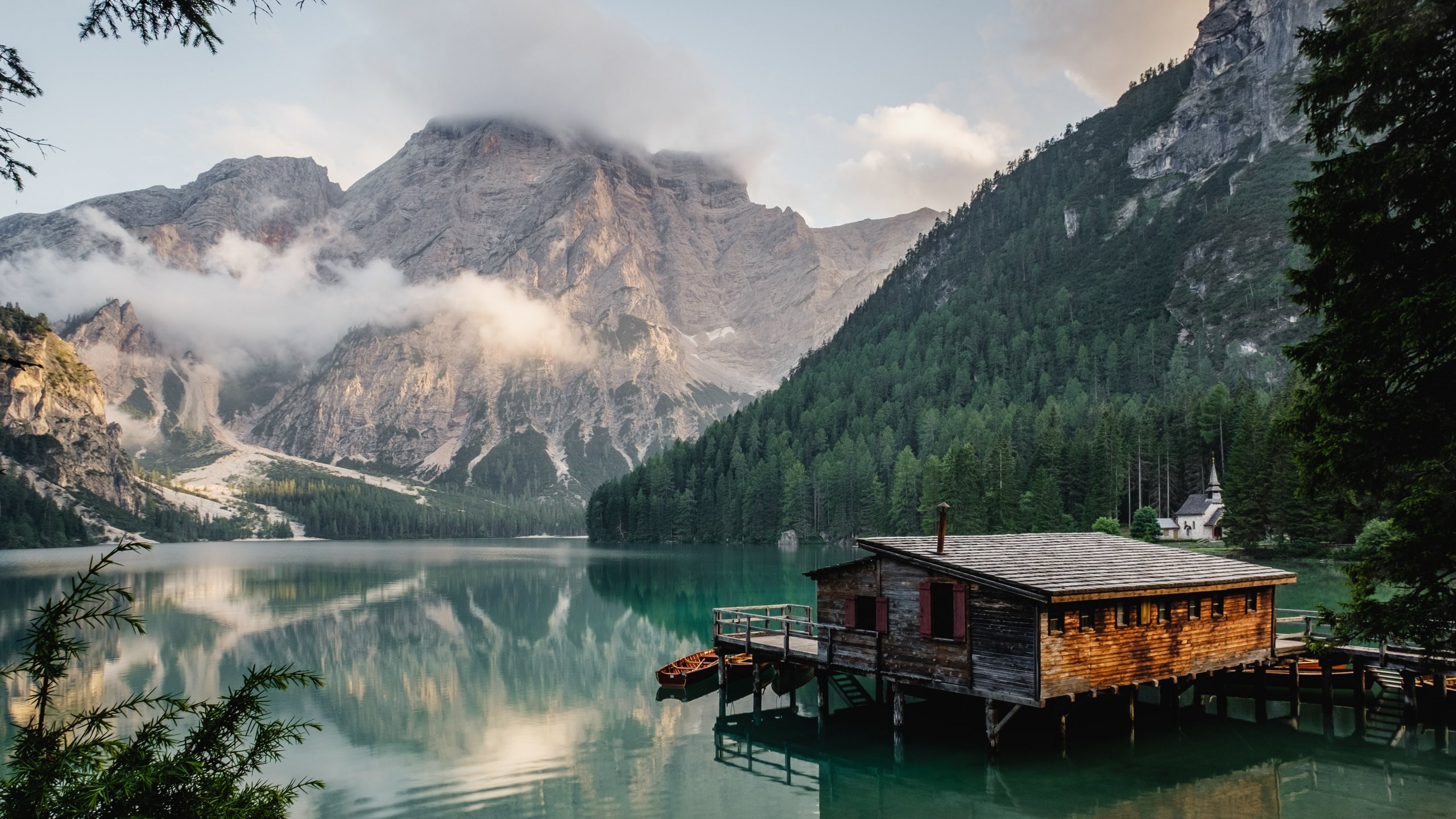 Обои: Озеро Брайес, дом у озера, озеро - 2560x1440
