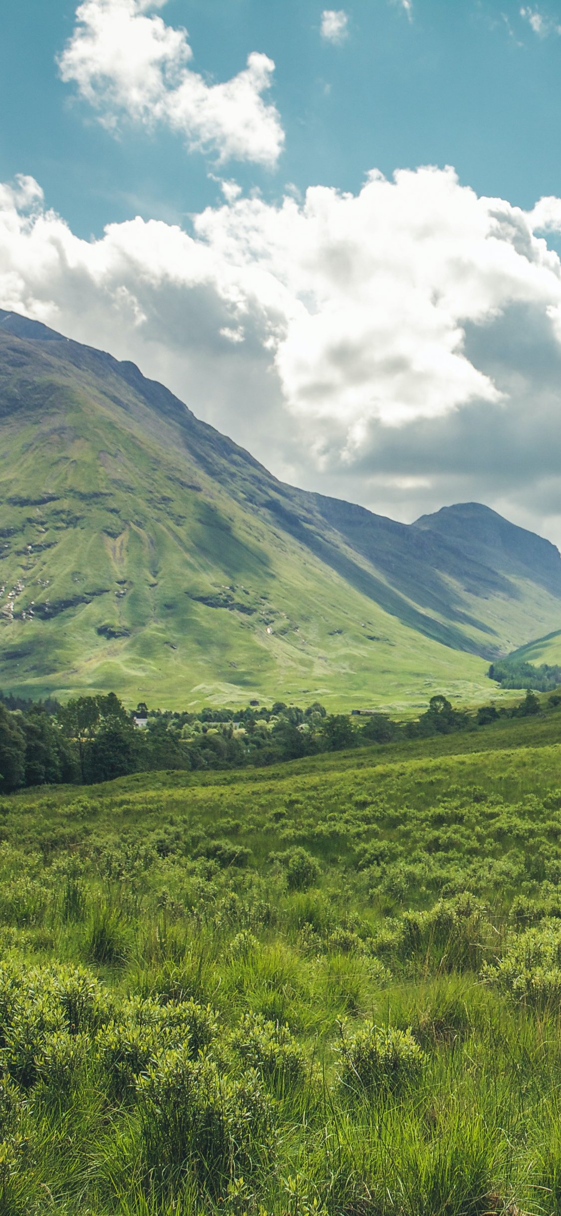 Обои: долина, холмы, Шотландия - 1125x2436